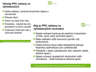 #53 David Špinar z agentúry H1 v jednej zo svojich prezentácii vyzdvihol výhody PPC vo vyhľadávačoch, a naopak povedal aj to, kedy je PPC vo vyhľadávačoch nevhodné.