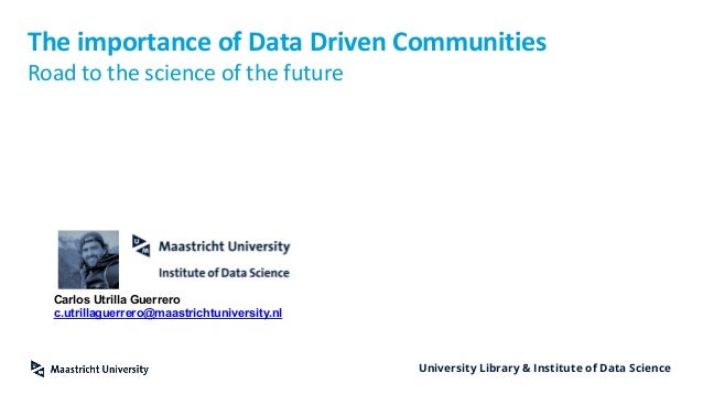 The document discusses the University Library and Institute of Data Science at Maastricht University, emphasizing the importance of FAIR (Findable, Accessible, Interoperable, and Reusable) principles for digital research and fostering a collaborative research environment. It highlights initiatives aimed at changing research culture, supporting data-driven insights, and promoting responsible data usage. The goal is to enhance multidisciplinary collaboration and improve the quality of research by 2023.