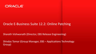 This document discusses Oracle E-Business Suite 12.2 online patching. It describes the 12.2 architecture which uses a dual file system and edition-based redefinition to enable online patching with minimal downtime. The online patching cycle consists of 5 phases managed by the new patching tool "adop" and includes preparing the patch file system, applying changes, and performing a cutover to make the changes live with minimal downtime.