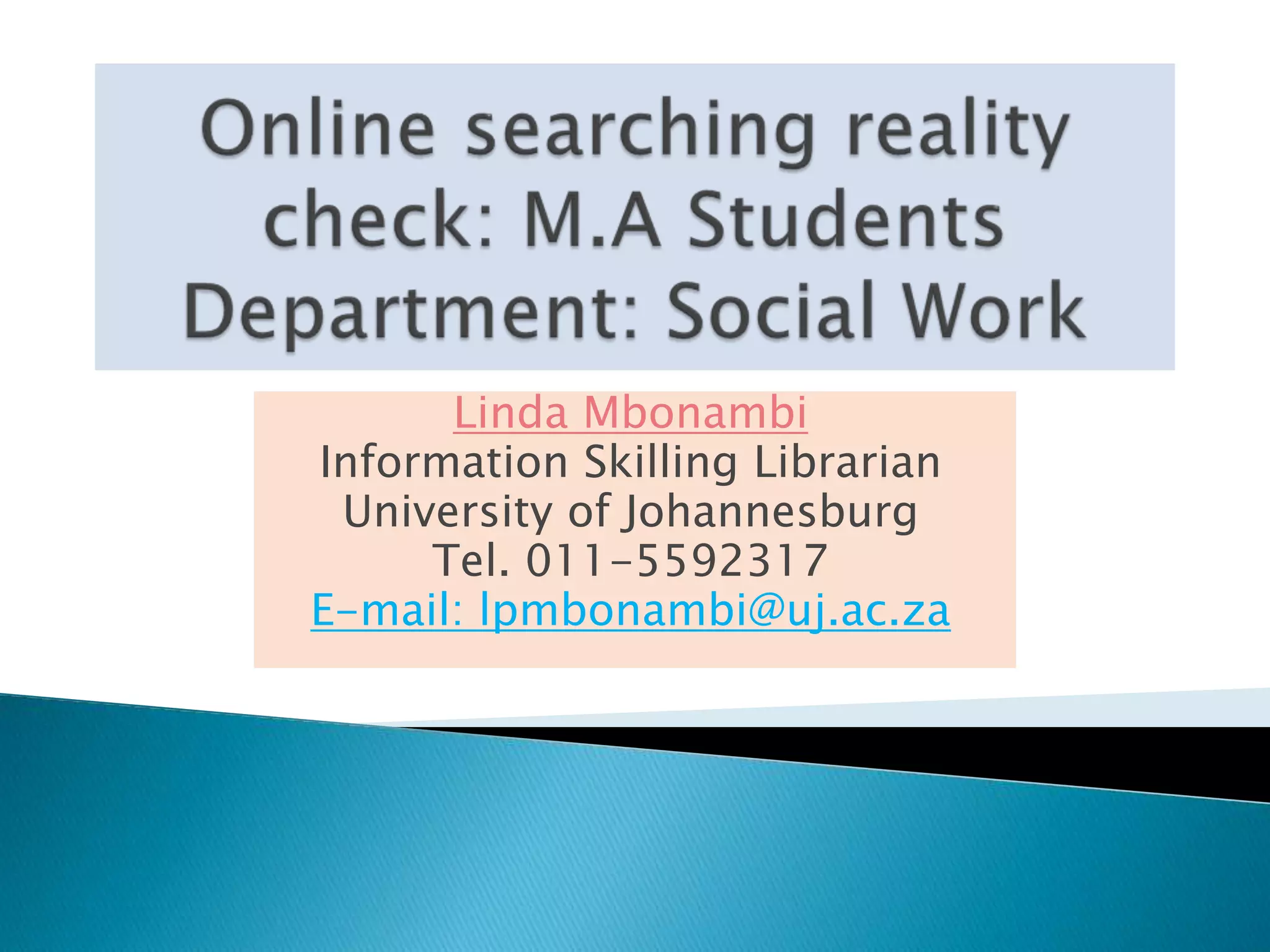 This document provides a 6-step process for conducting library research and finding relevant information from library resources. It outlines how to: 1) analyze your topic and identify main ideas and keywords, 2) search for books and journal articles on the library website and databases, 3) understand book and article citations, 4) evaluate the appropriateness of found information, 5) incorporate information appropriately into assignments, and 6) contains additional guidance on creating search alerts, finding full-text articles in databases and journals. The document aims to skill students in effectively navigating library resources to research their topics and assignments.