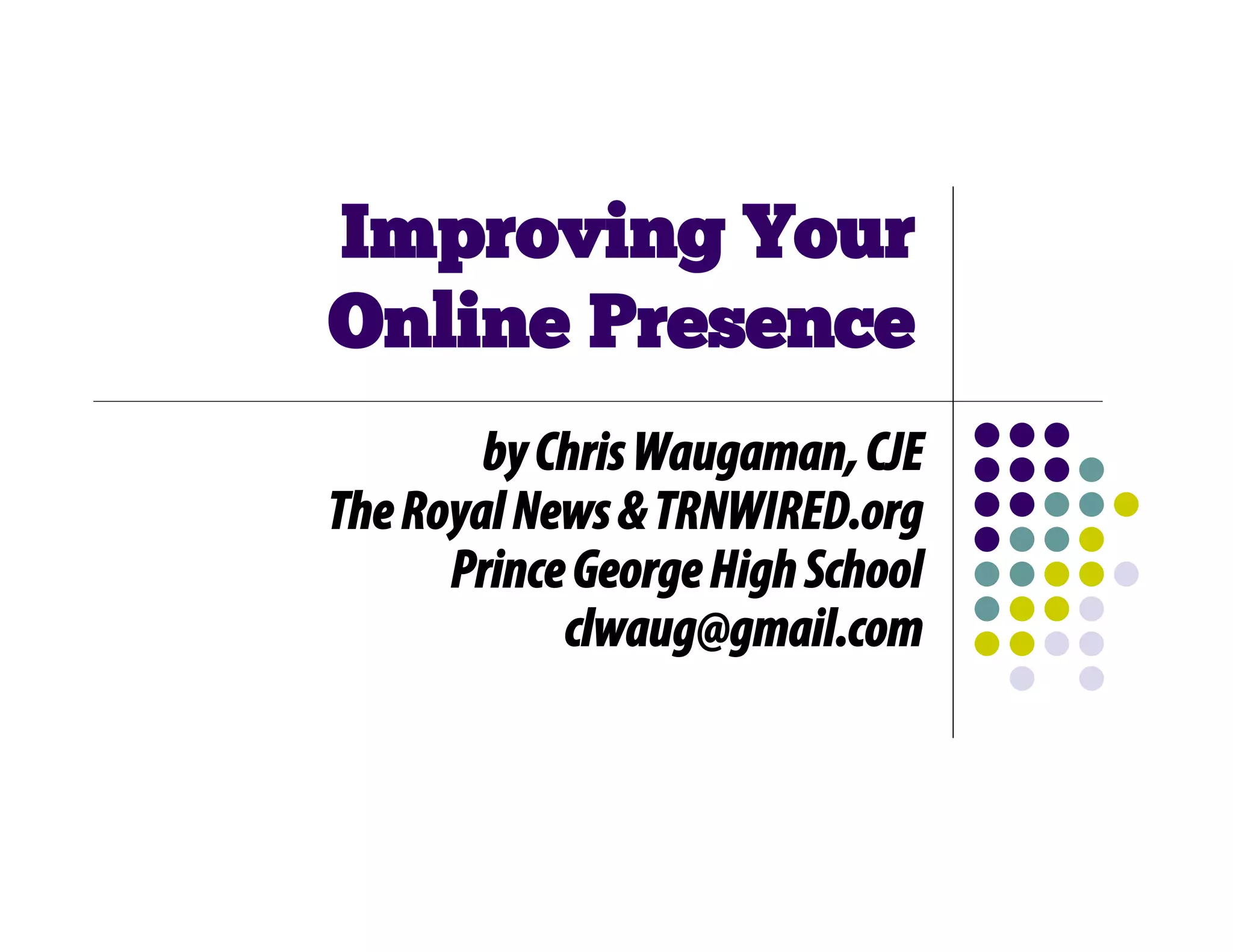 This document provides guidance for staff on improving a school's online presence. It identifies 5 key questions to consider: where students get online information, what they want to see, how staff can deliver that content, what to do if they can't deliver, and how to let students know the content is available. It recommends staff focus online content on photos, videos, sports, opinions and storytelling. It also provides tips on tools like WordPress and ways to promote the online content through social media and printed materials. The overall goal is to understand students' online habits and deliver engaging content to attract their online attention.