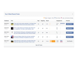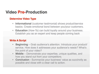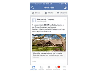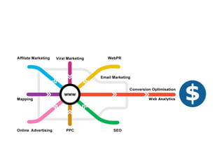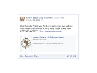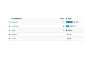 This document provides guidance on developing an effective online marketing strategy for businesses in the tourism industry. It emphasizes the importance of having an online presence and using it for both marketing and management. It offers tips for defining products and services, identifying target audiences, creating engaging website and social media content, optimizing for search engines, and monitoring analytics. The overall recommendation is to develop an online strategy, allocate budgets to it, focus on engaging content, interact with customers, and continually adapt to trends.