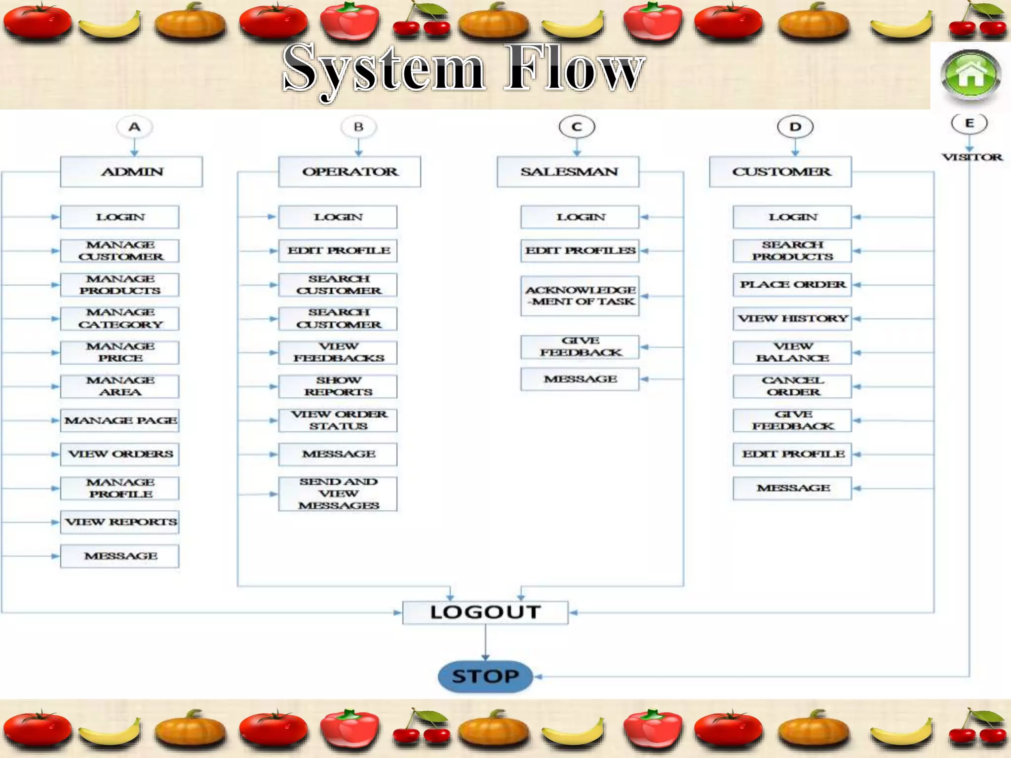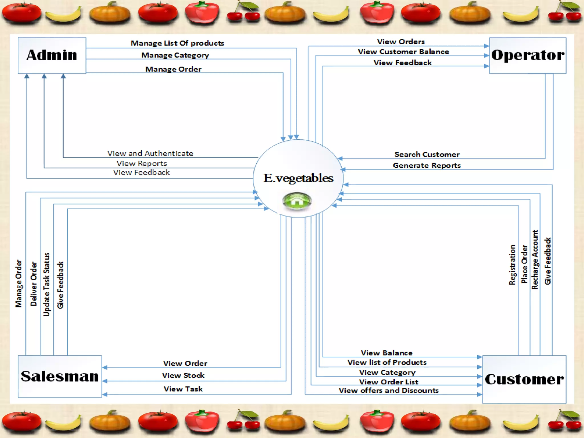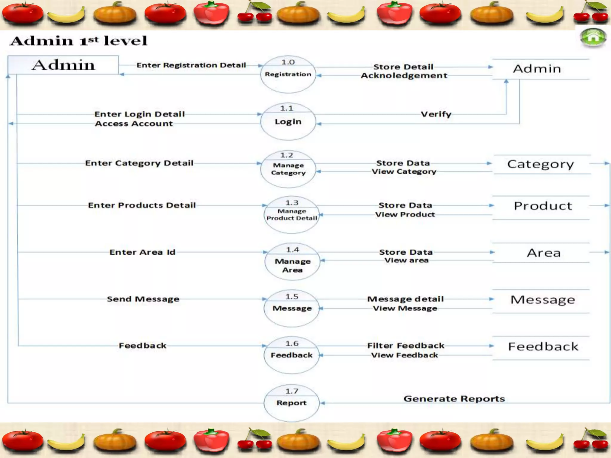This document describes an online organic vegetable and fruit delivery system. It outlines the existing manual system where customers must travel to markets to purchase produce. The new proposed system allows customers to order organic produce online and have it delivered to their doorstep for convenience. The document includes sections on system modules, entity relationship diagrams, data flow diagrams, and a data dictionary defining the tables and fields in the database.