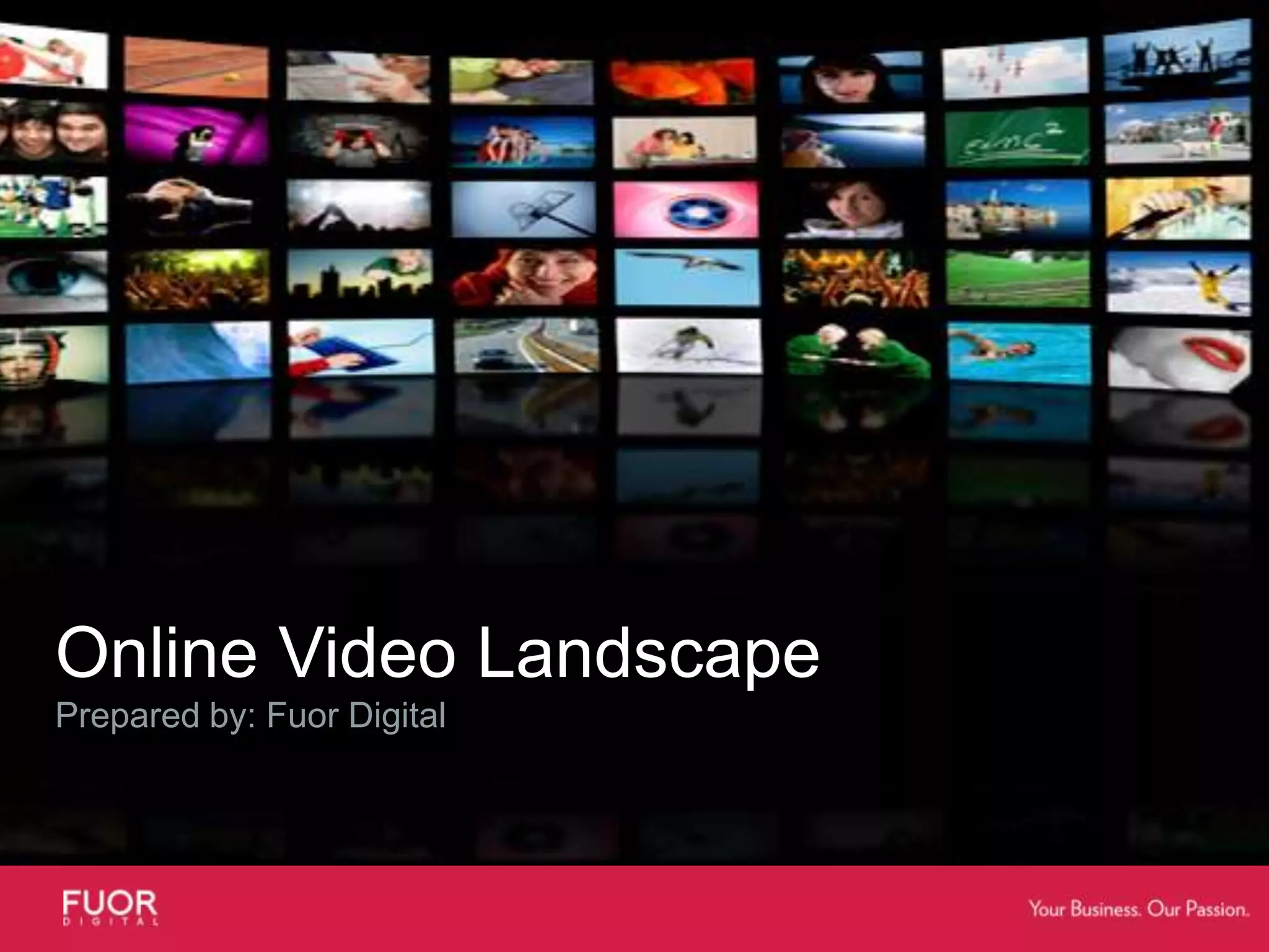 This document provides an overview of the online video landscape. It notes that while TV viewing is still prominent, behaviors are changing as viewership fragments across multiple screens. Nearly 60% of US households now have broadband access and online video streaming is growing rapidly. Younger demographics are more likely to watch online video. Popular online video sites like YouTube see billions of views monthly. The document also discusses how online video provides opportunities for targeted and measurable video advertising compared to traditional TV. It predicts online video advertising spending will continue growing substantially in coming years.