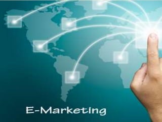 The document discusses online marketing, its types, and its impact on local businesses, highlighting strategies like email marketing, blogging, and social media marketing. It emphasizes the advantages and challenges of online marketing, including the importance of adapting to digital methods for future success. Notably, it references the growth of the online marketing industry and the significance of the AIDA model in guiding marketing strategies.