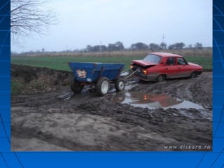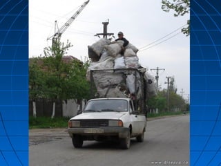 This document appears to be advertising various Romanian services like parking, garages, taxis, and even a Trabant V6 for sale. It also mentions the Romanian police parking in the right place and some drinking.