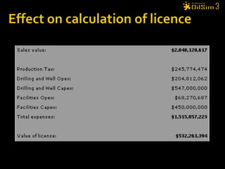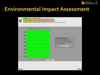 The document provides instructions for an exploration team on their tasks in finding and drilling for new petroleum reserves. The team's objective is to maximize return on investment. They are given $50 million to start and can apply for more funds later. Teams explore areas, identify sedimentary basins using surveys, bid on exploration licenses, drill wells using rigs, and can partner with other teams to share risks and rewards. The goal is to discover oil and gas fields and achieve the highest profit relative to funds received.