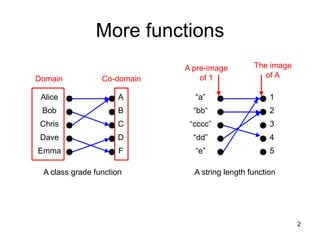 1. A function maps each element from a set (domain) to a unique element in another set (co-domain).
