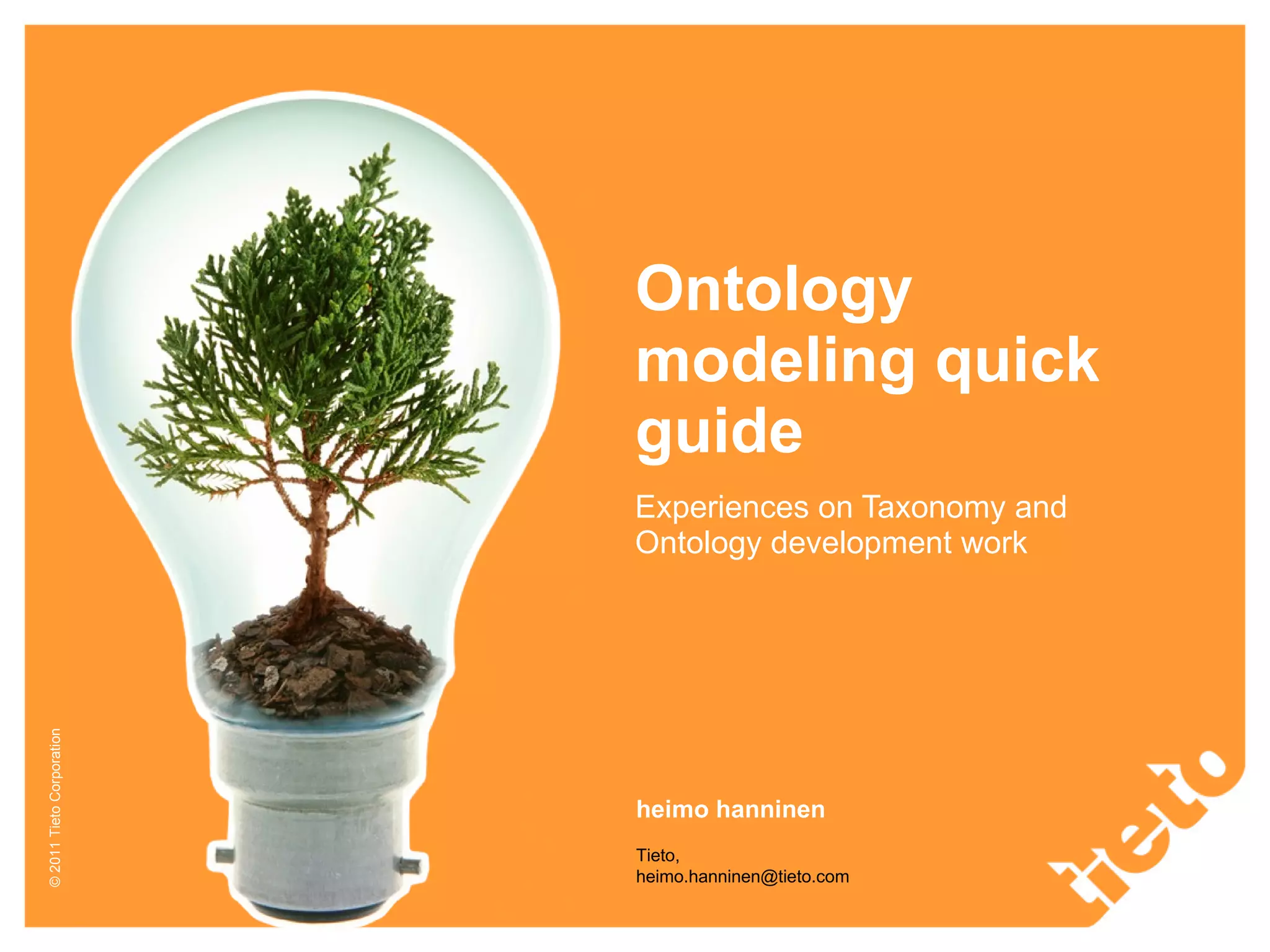 The document discusses the need for better organizing information through taxonomy and ontology development due to issues like information silos, inefficient searching, and lack of integration. It then provides an overview of an iterative phased approach to ontology modeling that involves preparation, conceptual modeling, logical modeling, implementation modeling, testing, and use case prototyping. The approach focuses on understanding business needs, extracting relevant entities, properties and relationships, and formally modeling and mapping the ontology.