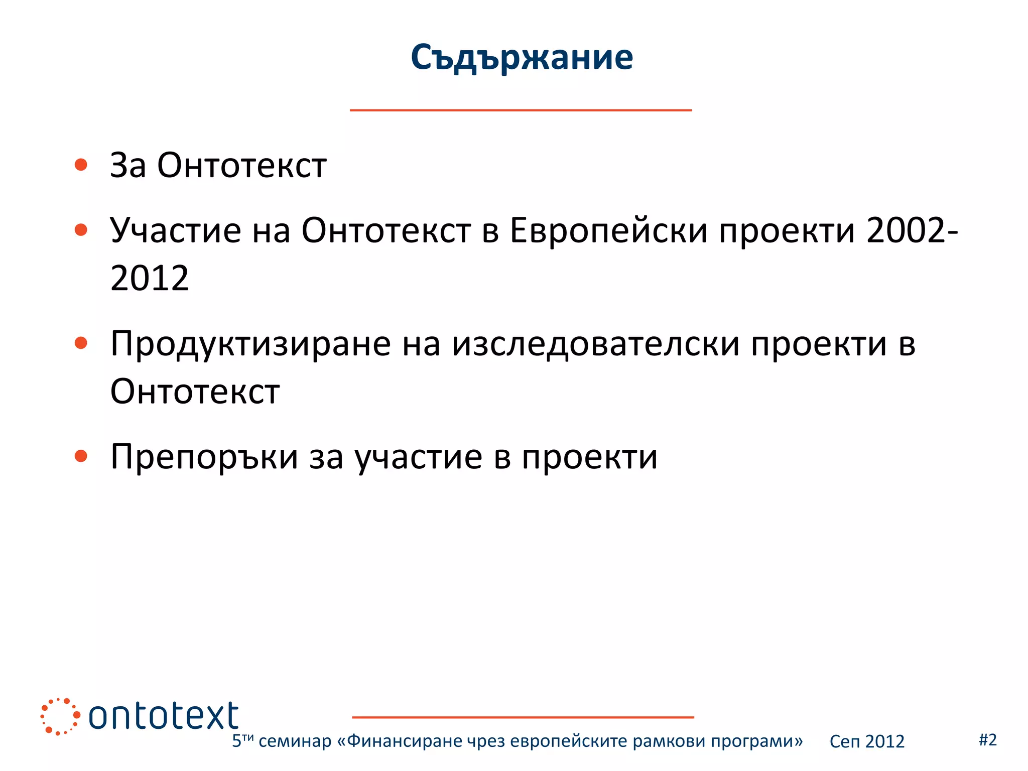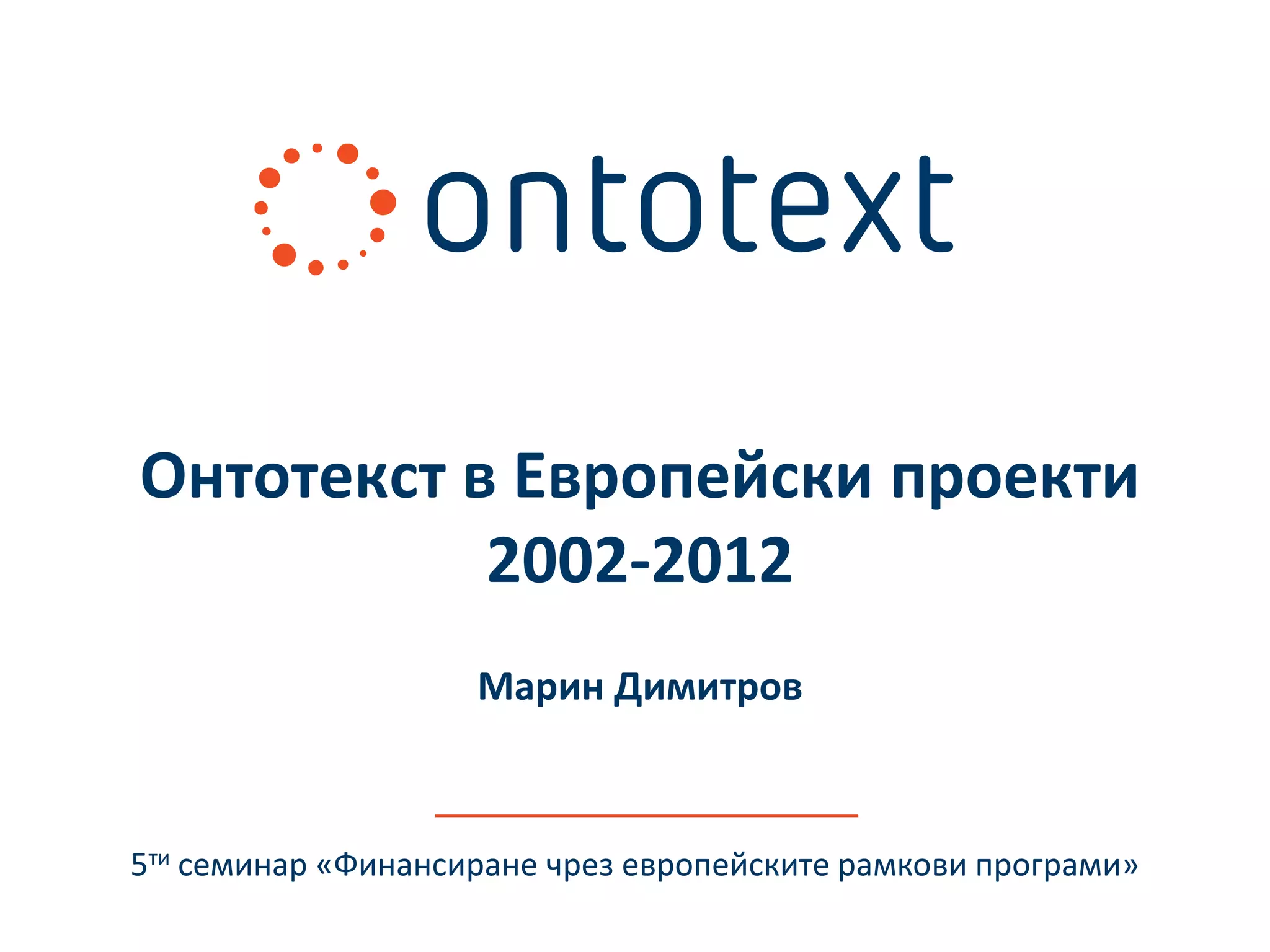 Онтотекст в Европейскипроекти 2002-2012
