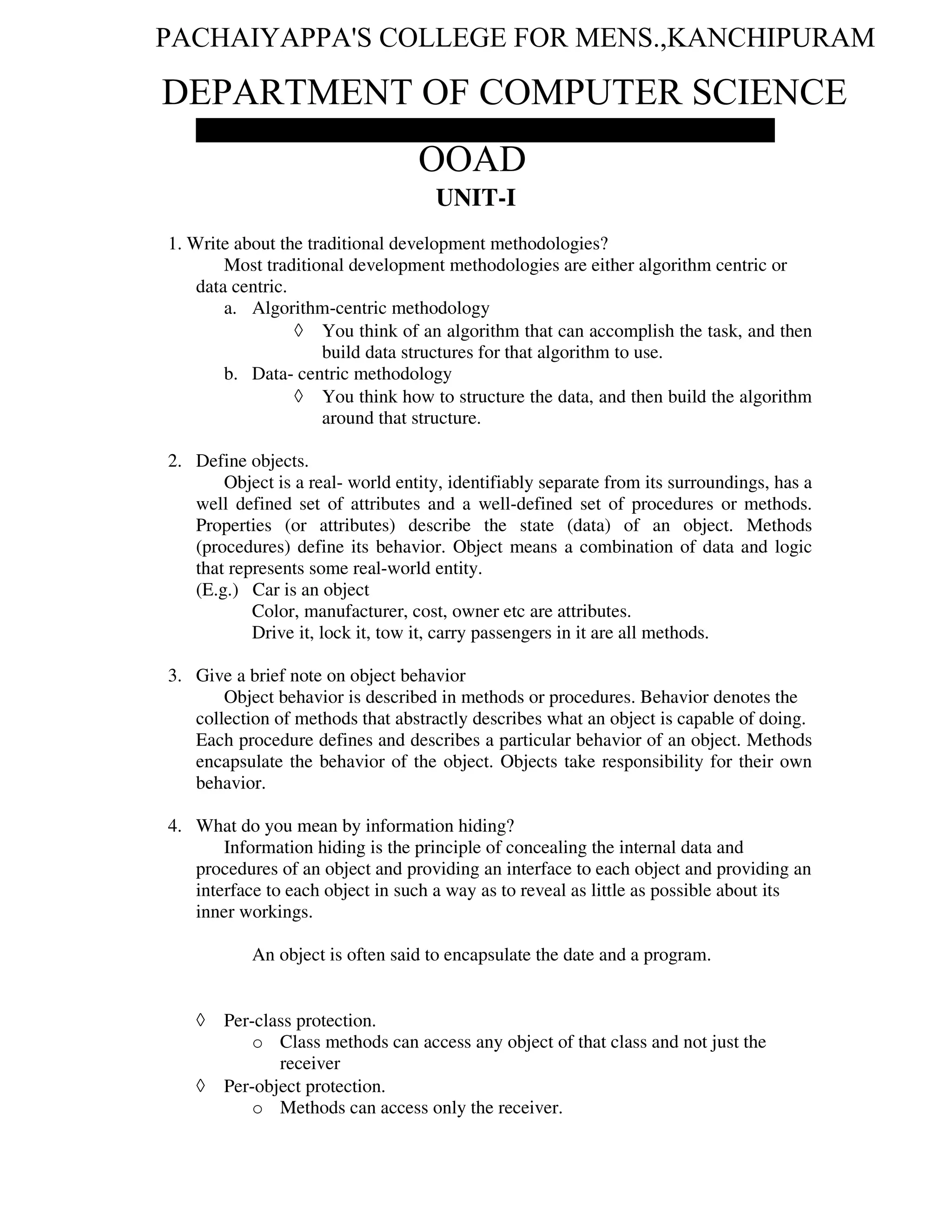 1. Traditional development methodologies are either algorithm-centric or data-centric, focusing on algorithms or data structure first.