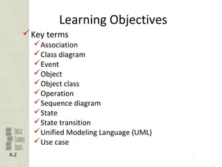 This document provides an overview of object-oriented analysis and design (OOAD) and the unified process modeling approach. It discusses key OOAD concepts like use cases, class diagrams, state diagrams, sequence diagrams, and the three phases of analysis, design, and implementation. It also describes the unified process, which is an iterative methodology for developing software using these OOAD techniques and UML notation. The document aims to introduce the fundamental concepts and best practices of taking a problem domain through the object-oriented systems development lifecycle.