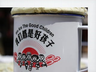 This slideshow documents the author's holiday, showing pictures of pandas, both baby and red pandas, as well as statues of Terracotta Warriors that were dug up from underground in China. It includes photos of the author and their family enjoying sights like cherry blossoms and struggling with long lines to get on the metro station. The slideshow thanks the viewer for watching and sharing glimpses into the author's experiences in China.