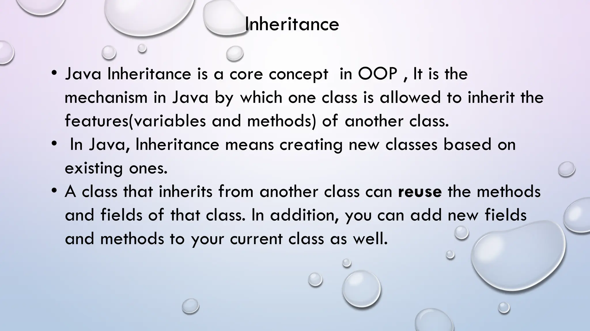 • Java Inheritanceis a core concept in OOP , It is the
