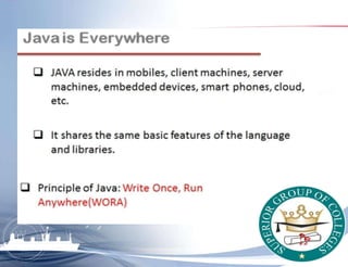 Modifiers: Modifiers like public, private, static etc. specify attributes of classes, methods and variables.