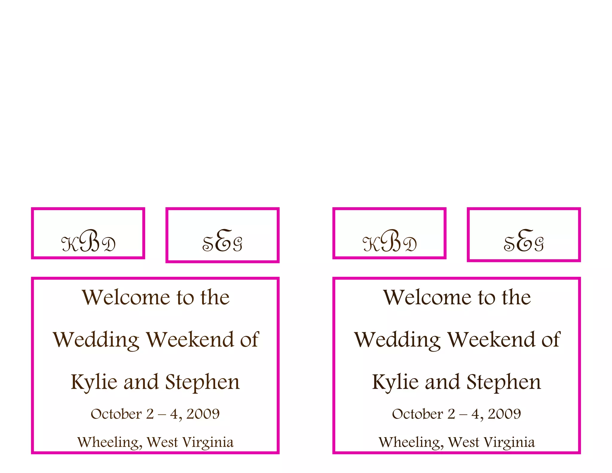 Kylie and Stephen are getting married in Wheeling, West Virginia from October 2-4, 2009. The wedding ceremony will be held at St. Joseph Cathedral on October 3 at 2:30 pm, and the reception will follow at 5:00 pm at River City Ale Works. The document provides information about accommodations at the Spring Hill Suites Marriott, directions to the wedding venues, and dining and entertainment options in the area during the wedding weekend.