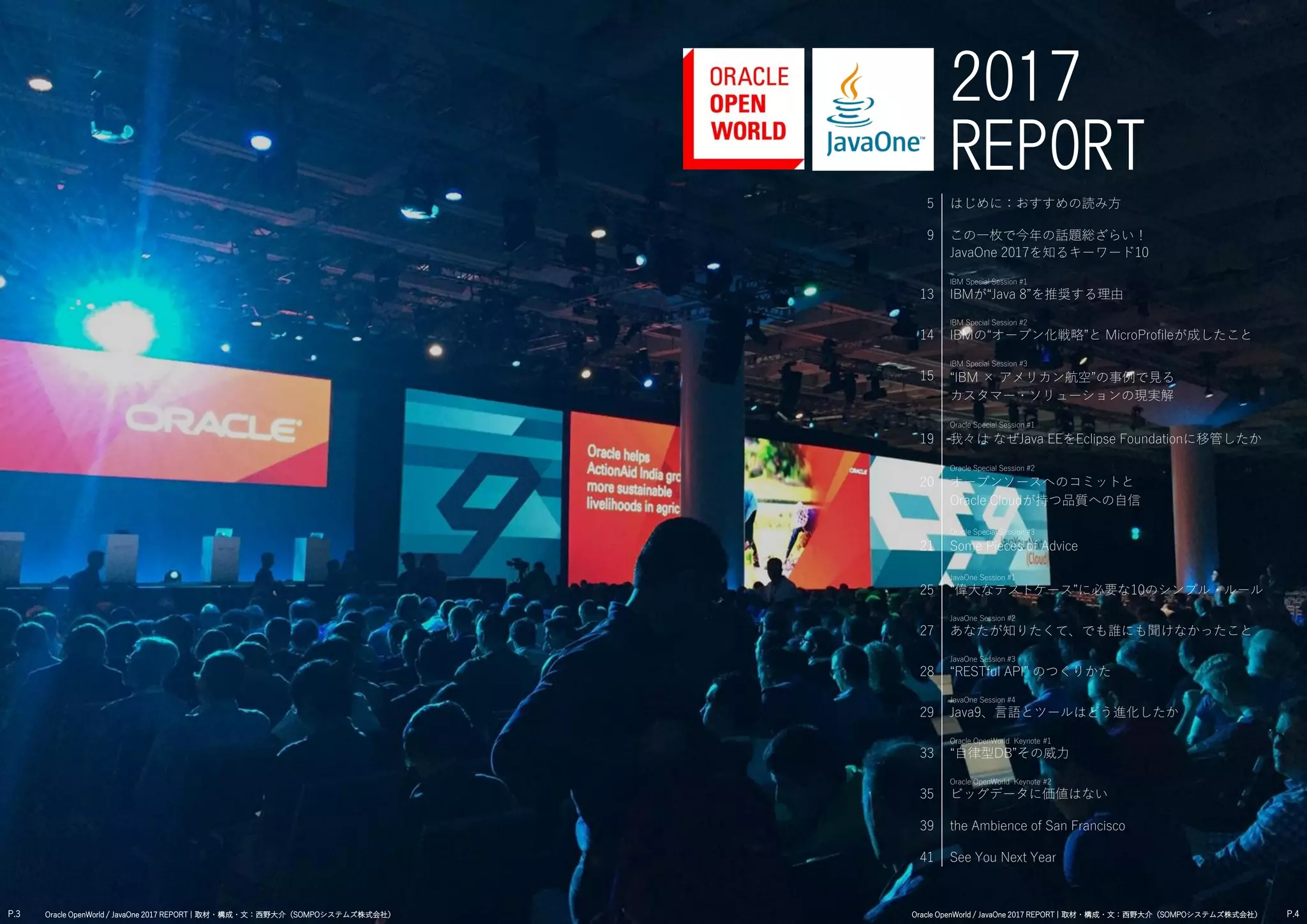 【そのまま表示すると見づらいため、ダウンロードしてご参照ください】Oracle OpenWorld2017とJavaOne2017のレポートです。IBM社、Oracle社に設定いただいた個別セッションの内容も含めています。社内向けに公開したものから、一部公開範囲の都合により差し替えています。