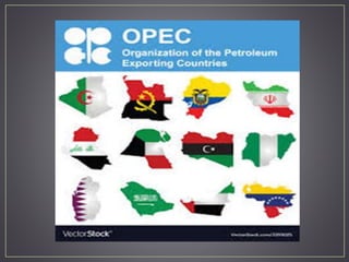 OPEC, established in 1960, is a multinational organization formed to coordinate the petroleum policies of its member countries and ensure a stable oil market. It has evolved to play a significant role in influencing global oil prices and policies, with members holding a majority of the world's oil reserves. While OPEC has considerable short-term influence over oil pricing, its long-term ability to control prices is limited due to varying interests among individual member countries.