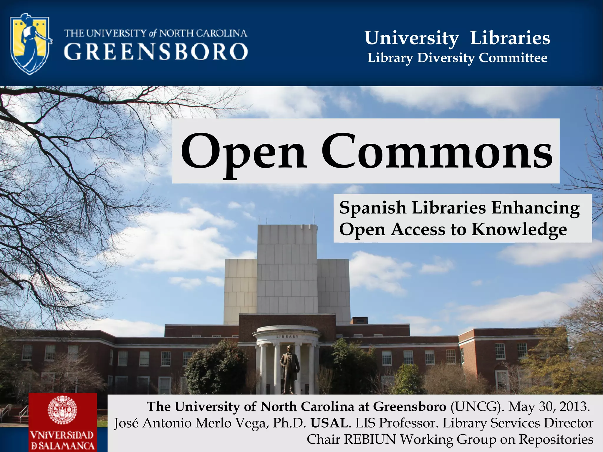 The document discusses the enhancement of open access to knowledge by Spanish libraries, with a focus on the University of Salamanca's library services and repository. It outlines key issues, policies, and resources facilitating open access in Spain, presenting statistics on repositories and academic journals. Furthermore, it emphasizes the role of open standards, rights, and attitudes in promoting knowledge sharing and accessibility in academic contexts.