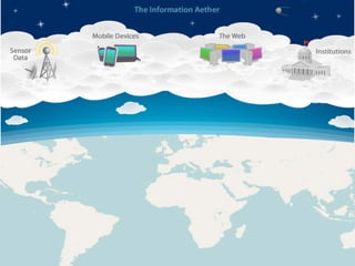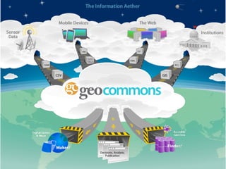 This document discusses open access to multi-domain collaborative analysis of geospatial data through the internet. It talks about open data from various sources like government, public, enterprise, mobile, and sensor data. It proposes combining geoscience and the web to make data accessible, meaningful, explorable, and collaborative. It envisions mobile globes and geolocated information to better serve areas with limited internet access. Finally, it discusses aspects of collaborative GIS like communication, cooperation, coordination, and collaboration to encourage cross-organizational sharing and analysis of geospatial data.