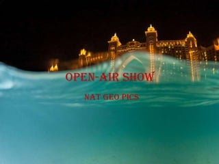 An open-air show was held in Almati that featured pictures from National Geographic. The short document does not provide many details about the event, but indicates it involved an outdoor exhibition of National Geographic photographs in the city of Almati.