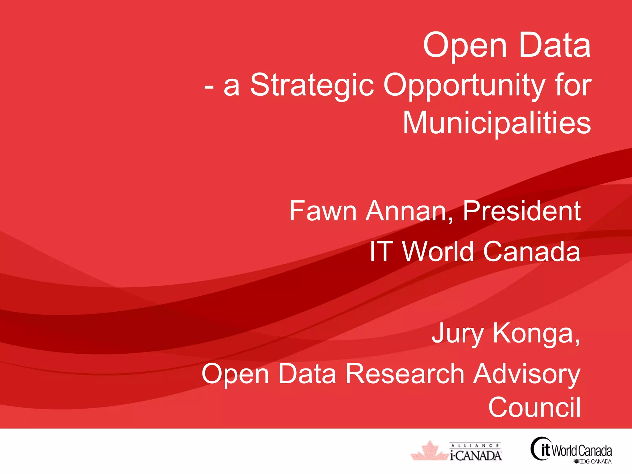 Open data is a strategic opportunity for municipalities that can offer efficiencies, enhance service delivery, and spur economic development. As more citizens seek online services from their municipal governments, open data is becoming an important tool to enable transparency and self-service applications. A new study will examine open data use in Canadian municipalities of different sizes to provide insights on priorities, spending intentions, expected benefits, and best practices to help more municipalities leverage open data.