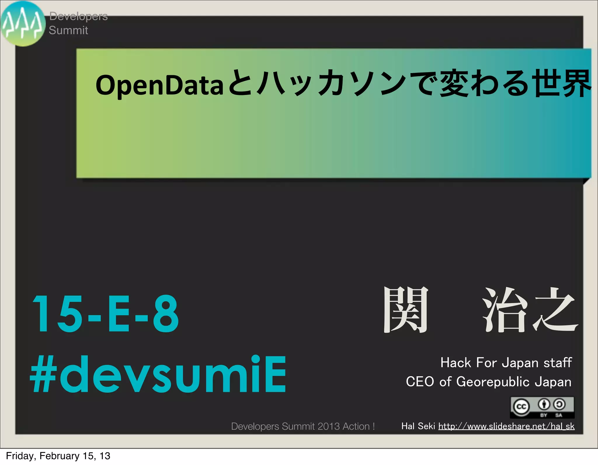 Developers Summit 2013 Action ! Hal Seki http://www.slideshare.net/hal_sk