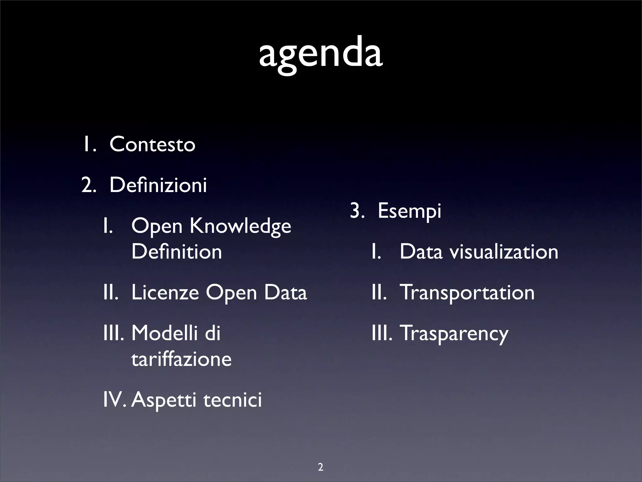 Il documento discute l'importanza degli open data per l'innovazione e la trasparenza nel settore pubblico, presentando vari modelli e definizioni associati. Viene evidenziato come la disponibilità di dati pubblici possa essere un'opportunità per la creazione di nuova tecnologia e servizi. Inoltre, viene descritto il contesto normativo in Europa e le tipologie di licenze per l'uso dei dati aperti.