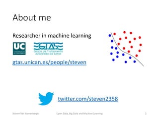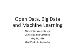 The document discusses the interrelations of open data, big data, and machine learning, focusing on their definitions, benefits, and applications. It highlights the importance of open data for transparency, the challenges in managing big data, and the evolution of machine learning from traditional rule-based systems to autonomous learning algorithms. The author emphasizes the need for robust frameworks in big data science and the transformative potential of machine learning in various fields.