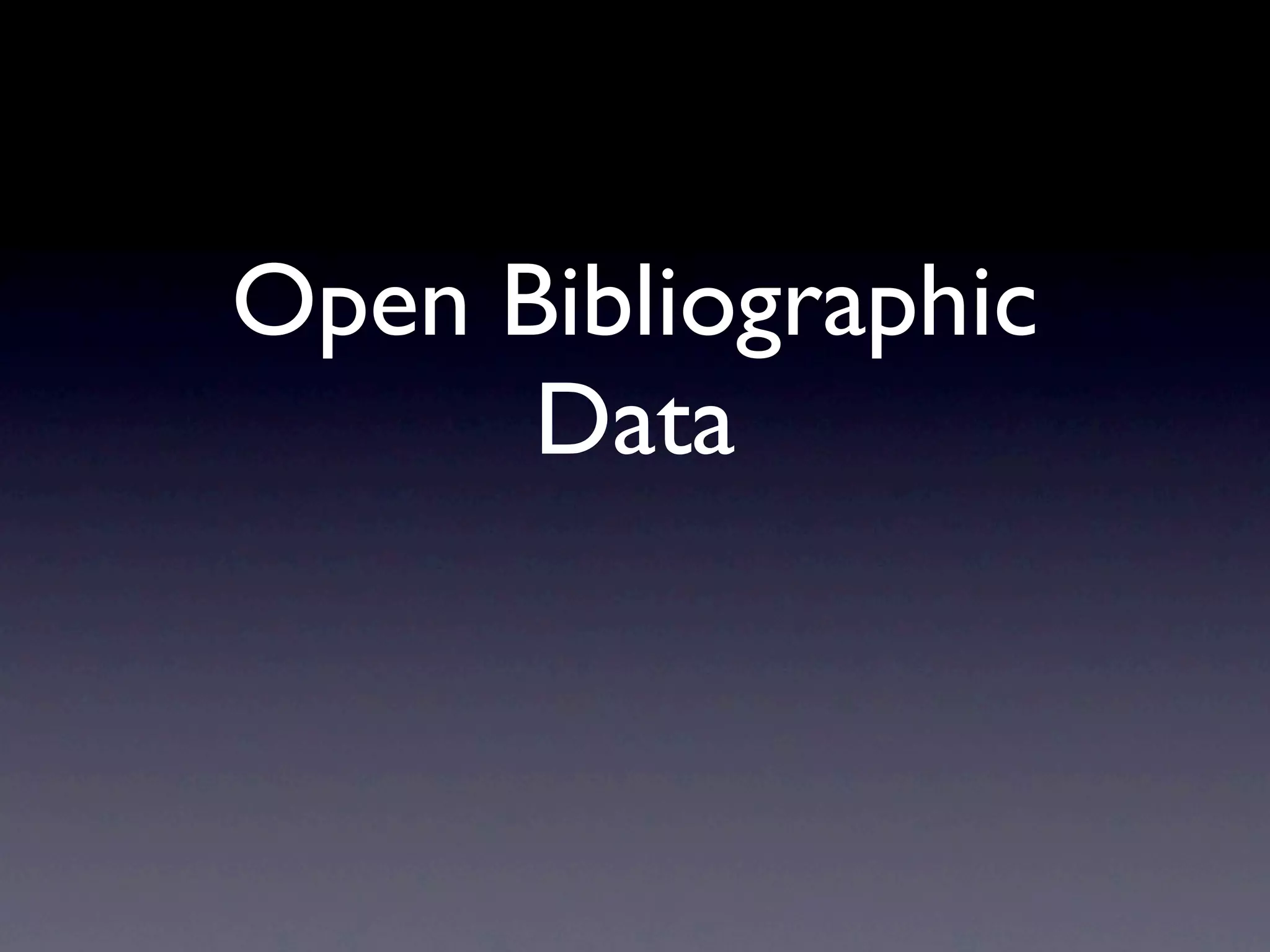 The document discusses open bibliographic data and recommends libraries make their data openly available by addressing technical issues, clarifying data ownership, increasing transparency, and applying open licenses. It encourages libraries to export their data, publish it online, describe it using common standards, and promote it within the open data community to advance open access to bibliographic information.