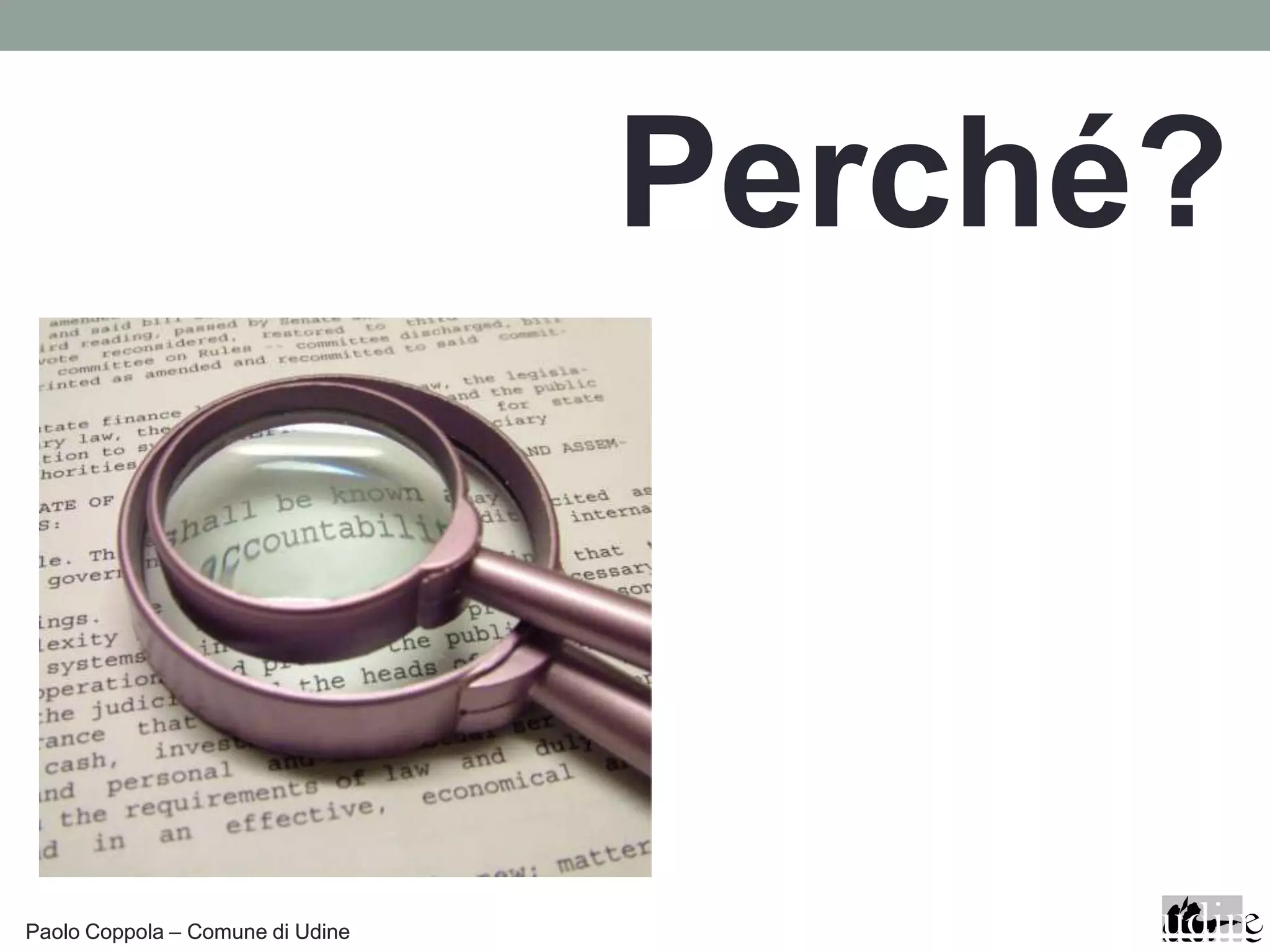 Il documento tratta dell'importanza degli open data nel comune di Udine, presentato dall'assessore Paolo Coppola. Viene discusso il contesto, le aree di applicazione e le possibilità di miglioramento nel sistema attuale. Sono menzionati vari settori come acqua, mobilità e rifiuti, evidenziando l'intenzione di implementare pratiche più trasparenti e informative.