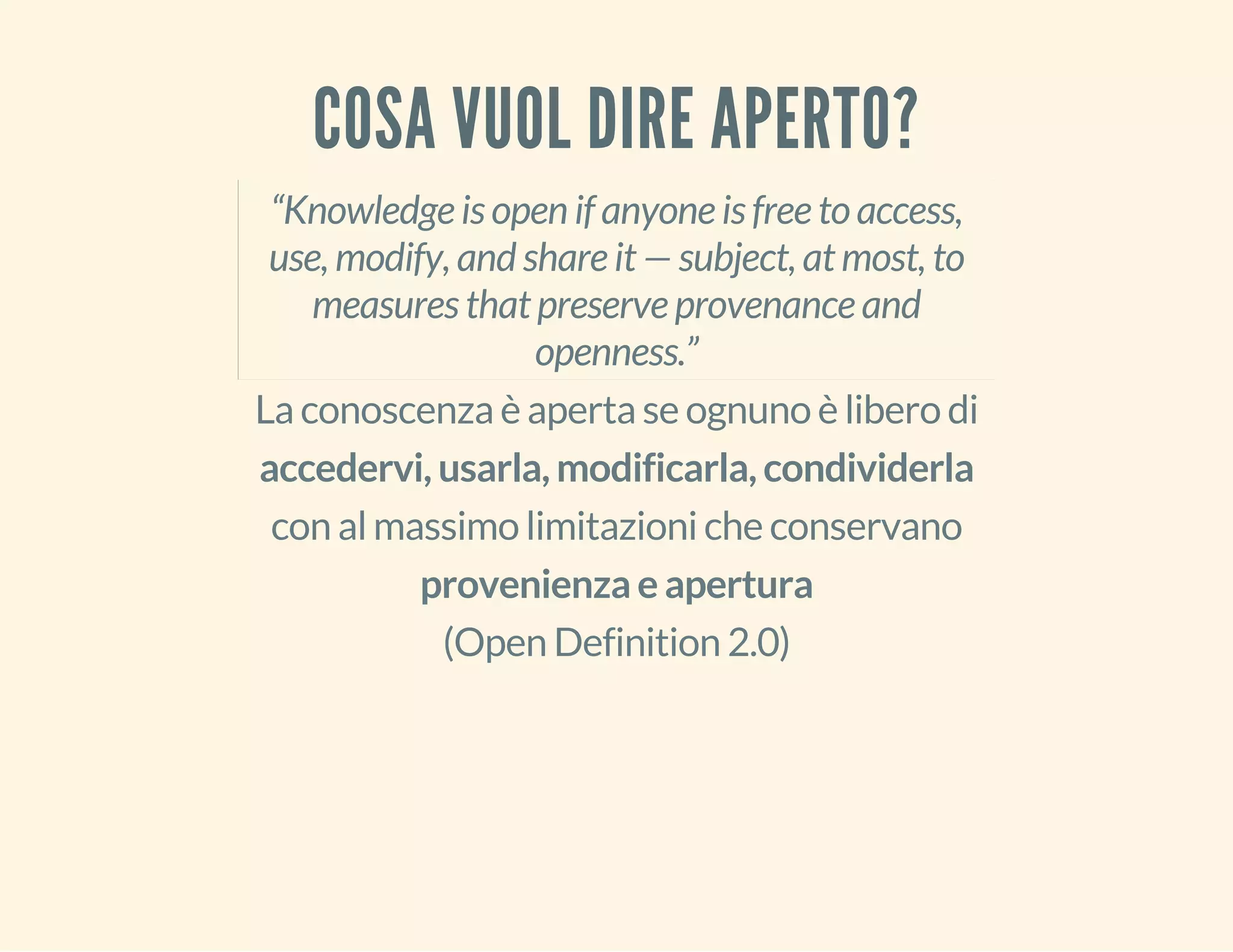 Il documento fornisce un'introduzione ai dati aperti, definendo il concetto di 'open' e la sua evoluzione storica, dalle licenze Creative Commons fino ai dati governativi aperti. Sottolinea l'importanza degli open data per la scienza, la trasparenza governativa e l'innovazione economica, evidenziando esempi pratici e progetti in corso in diverse località italiane. Infine, discute le sfide e le opportunità legate al riutilizzo dei dati aperti e alla loro pubblicazione in formati accessibili.