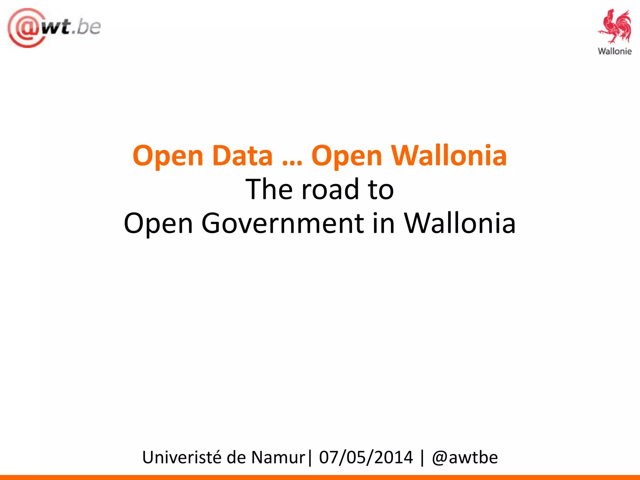The document outlines the role of the Agence Wallonne des Télécommunications (AWT) in promoting open data and digital governance in Wallonia, Belgium. It highlights initiatives like the creation of an open data platform based on real-time resources and the organization's focus on empowering citizens through digital public services. Furthermore, it discusses challenges faced by public services in adapting to modern needs and the potential of hackathons to stimulate innovation in service delivery for citizens.