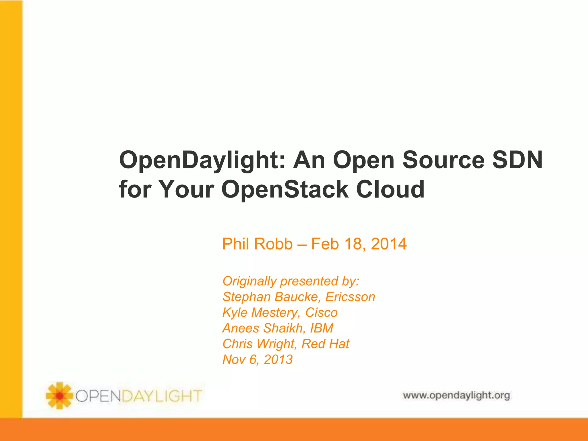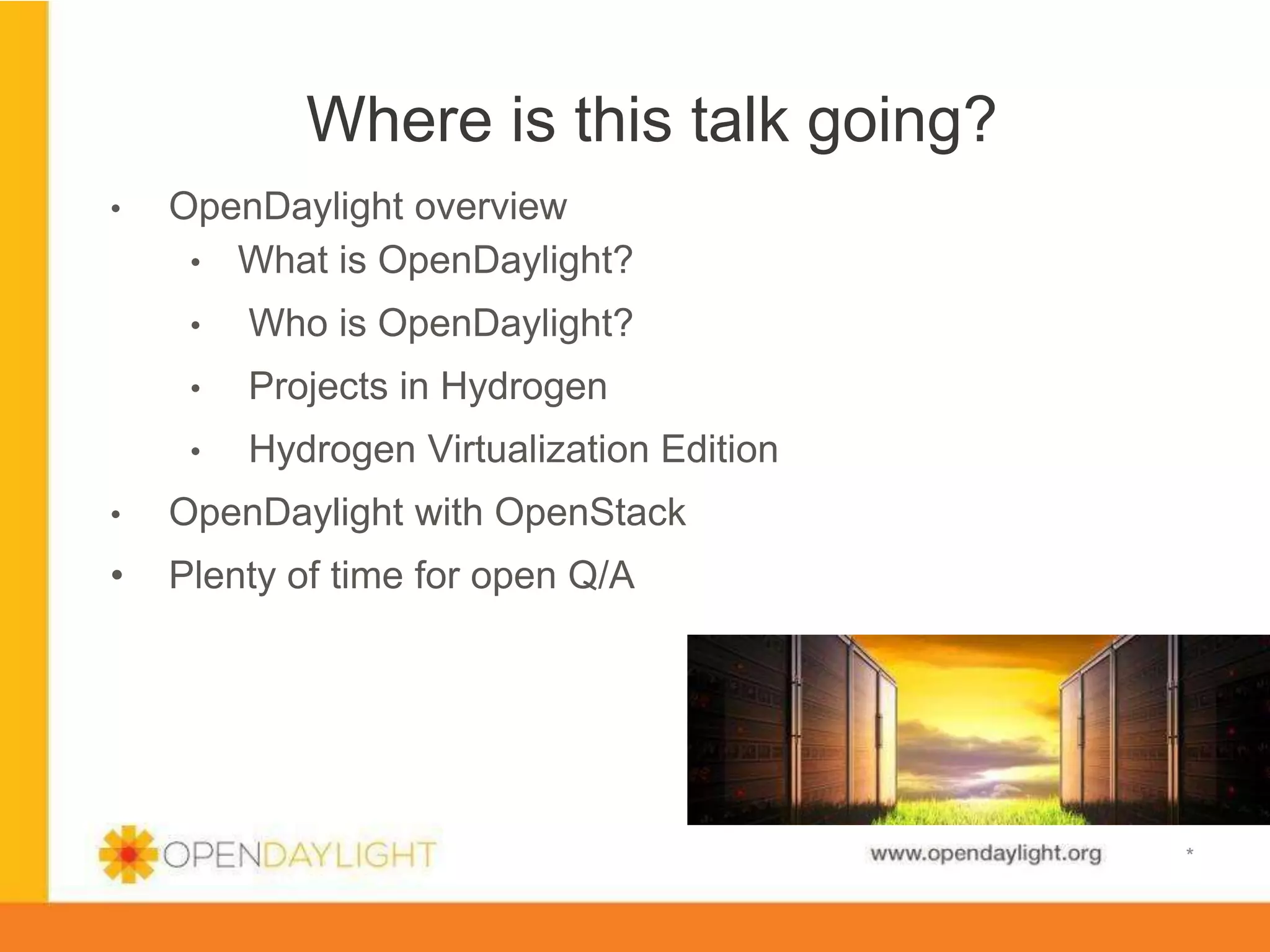 - What OpenDaylight is and its goals of furthering SDN adoption through an open source platform.
