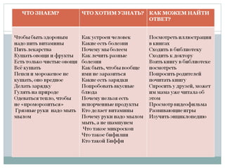 Документ описывает образовательный проект для дошкольников 'Если хочешь быть здоров!', целью которого является формирование у детей 4-6 лет привычки к здоровому образу жизни. В проекте рассматриваются различные аспекты здоровья, такие как личная гигиена, правильное питание, физическая активность и осведомленность о микробах и болезнях. Также проект включает в себя множество мероприятий и методик, направленных на развитие знаний и навыков, способствующих сохранению здоровья у детей.