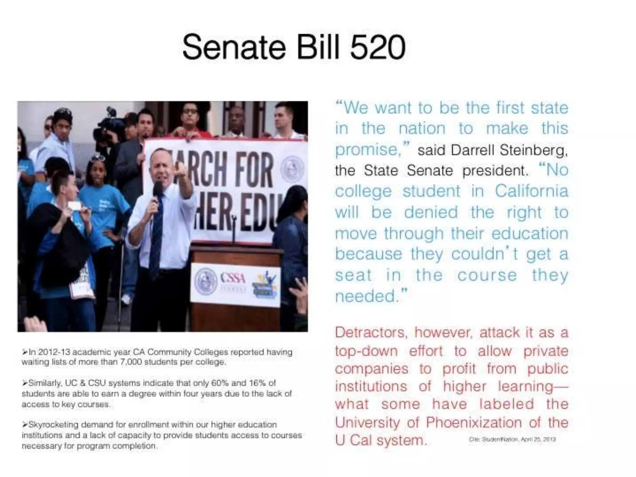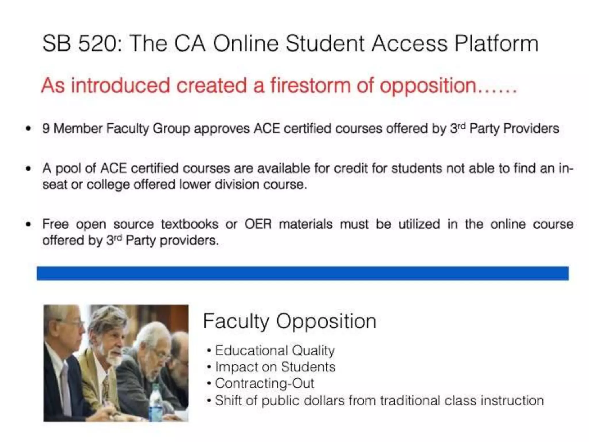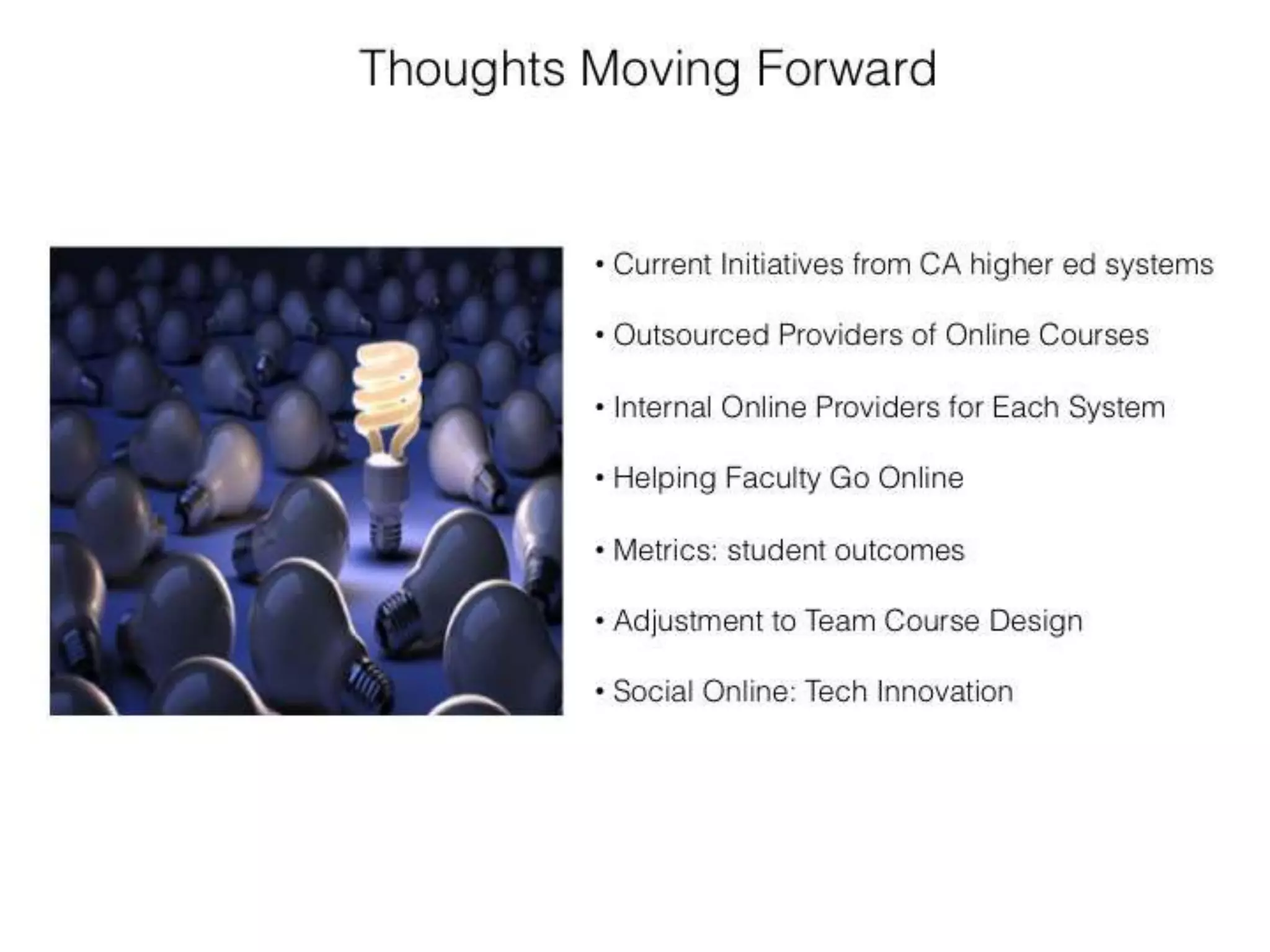 This webinar discussed open education, MOOCs, and student access in California community colleges. It covered Senate bills 1052 and 1053 which establish an open education resources library and council. Speakers discussed increasing student success and access through open educational resources, MOOCs, and competency-based learning. Concerns were raised about ensuring equal access to technology and success in online courses. MOOCs were viewed as a potential way to increase access if they increase student success rates. Developing high-quality, community college MOOOs was suggested as a way to capture effective teaching practices and make materials widely available.