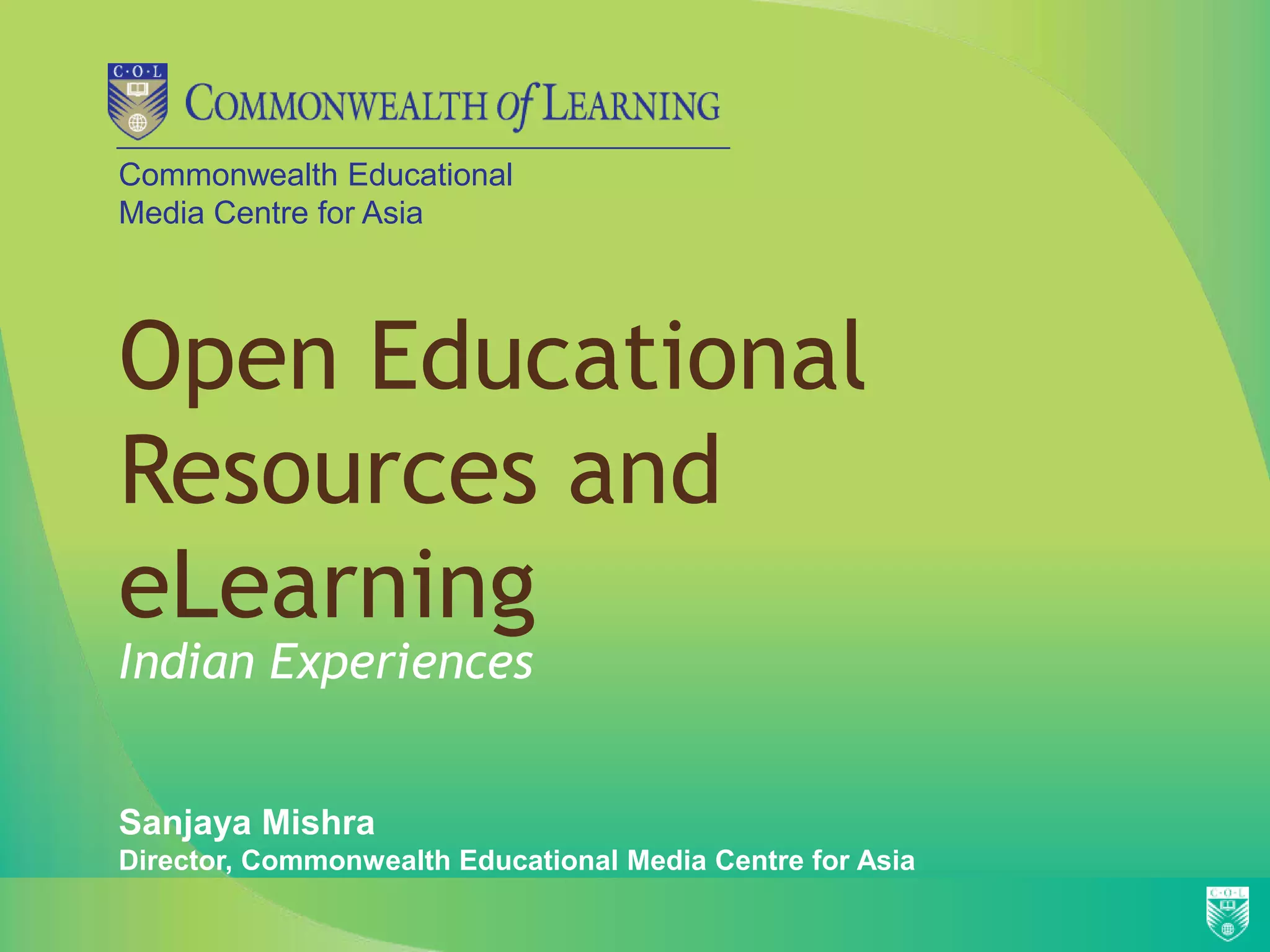 The document discusses the development and implementation of Open Educational Resources (OER) and eLearning in India, highlighting historical initiatives, challenges, and future possibilities. It emphasizes the importance of open licensing for educational material, collaborative course development using wiki-based tools, and the need for teacher capacity building. Additionally, it addresses the digital divide and promotes the integration of ICT in teacher education to enhance educational quality.