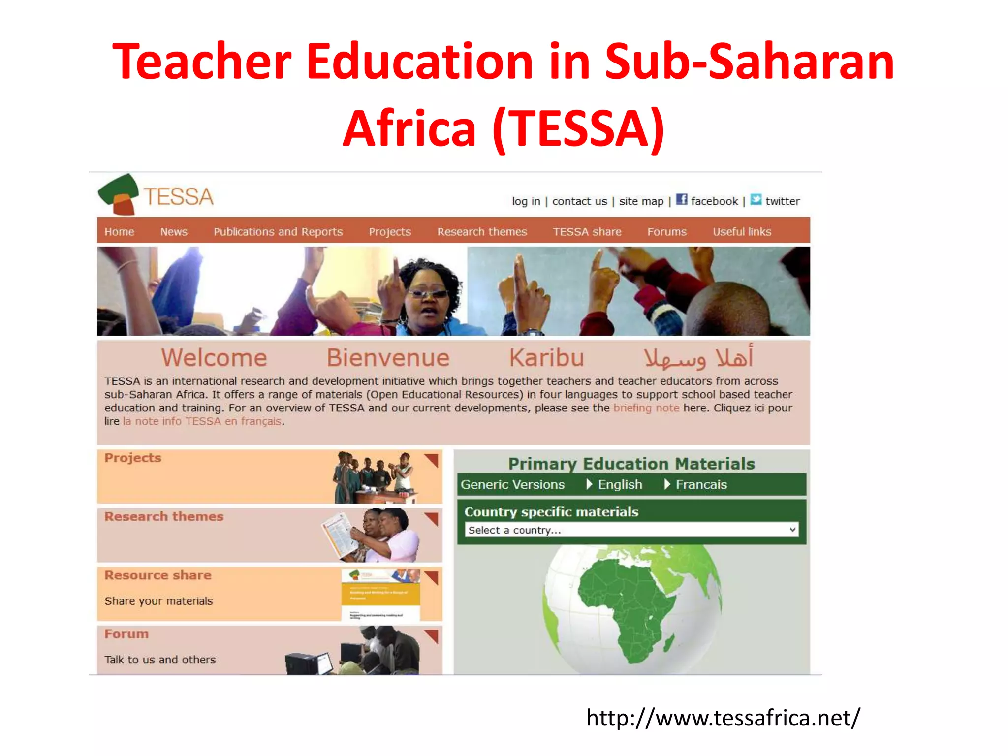The document discusses several open educational resource (OER) initiatives from a global perspective. It describes the Teacher Education in Sub-Saharan Africa (TESSA) initiative, which focuses on teacher education needs in nine African countries and creates audience-specific OERs primarily by African teacher educators. It also mentions TESSA explores using OERs in different formats like audio dramas and interviews. The document then discusses the Open Educational Quality (OPAL) Initiative, which aims to increase innovation and quality in higher and adult education through open educational practices using OERs. Finally, it briefly introduces the Virtual University for Small States of the Commonwealth (VUSSC) and some OER initiatives in countries like Thailand, Pakistan