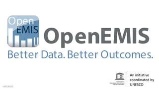 The document outlines an initiative coordinated by UNESCO aimed at enhancing education access through reliable data and cost-effective planning. It emphasizes the importance of long-term educational strategies, citing a $16 billion annual investment needed to ensure all children receive schooling, comparable to ice cream spending in Europe and America. The document also mentions resources and services provided by OpenEMIS, including customizable software and various training and support options.