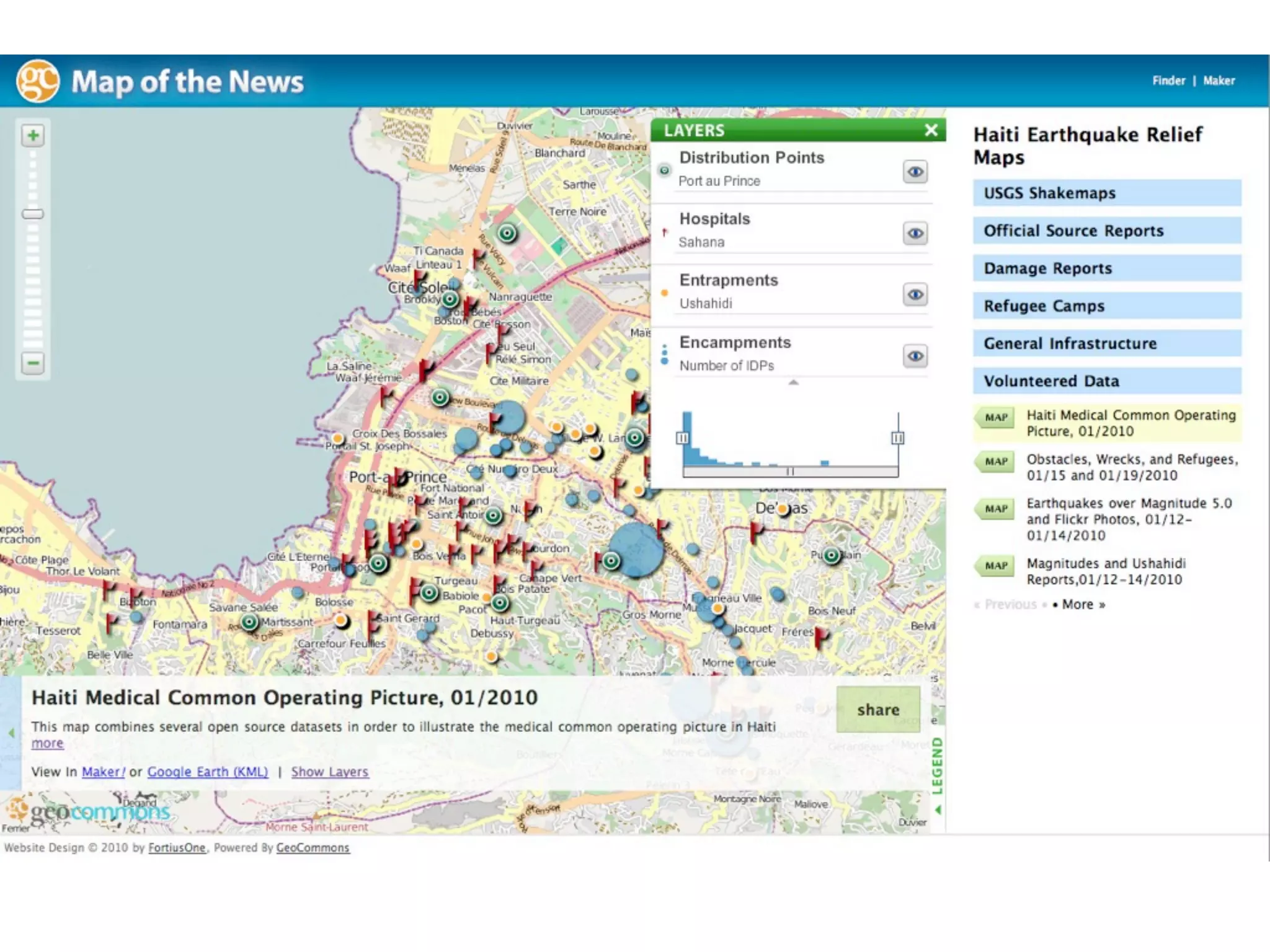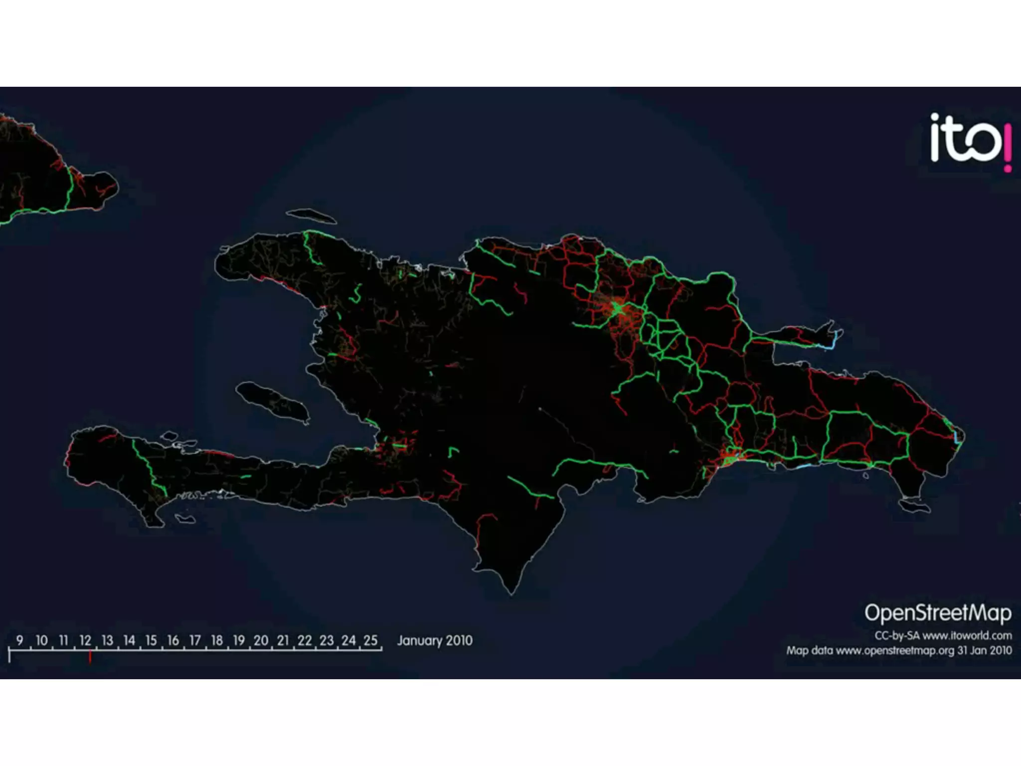 The document discusses the efforts of the Humanitarian OpenStreetMap Team (H.O.T.) to utilize open source and open data for humanitarian response and economic development in regions like Haiti and Afghanistan. It outlines various initiatives such as training classes, GPS data collection, and partnerships with local communities to enhance geographic data visualization and sharing. Additionally, it highlights the use of tools and resources like Geocommons and Walking Papers for mapping essential facilities like schools and clinics.