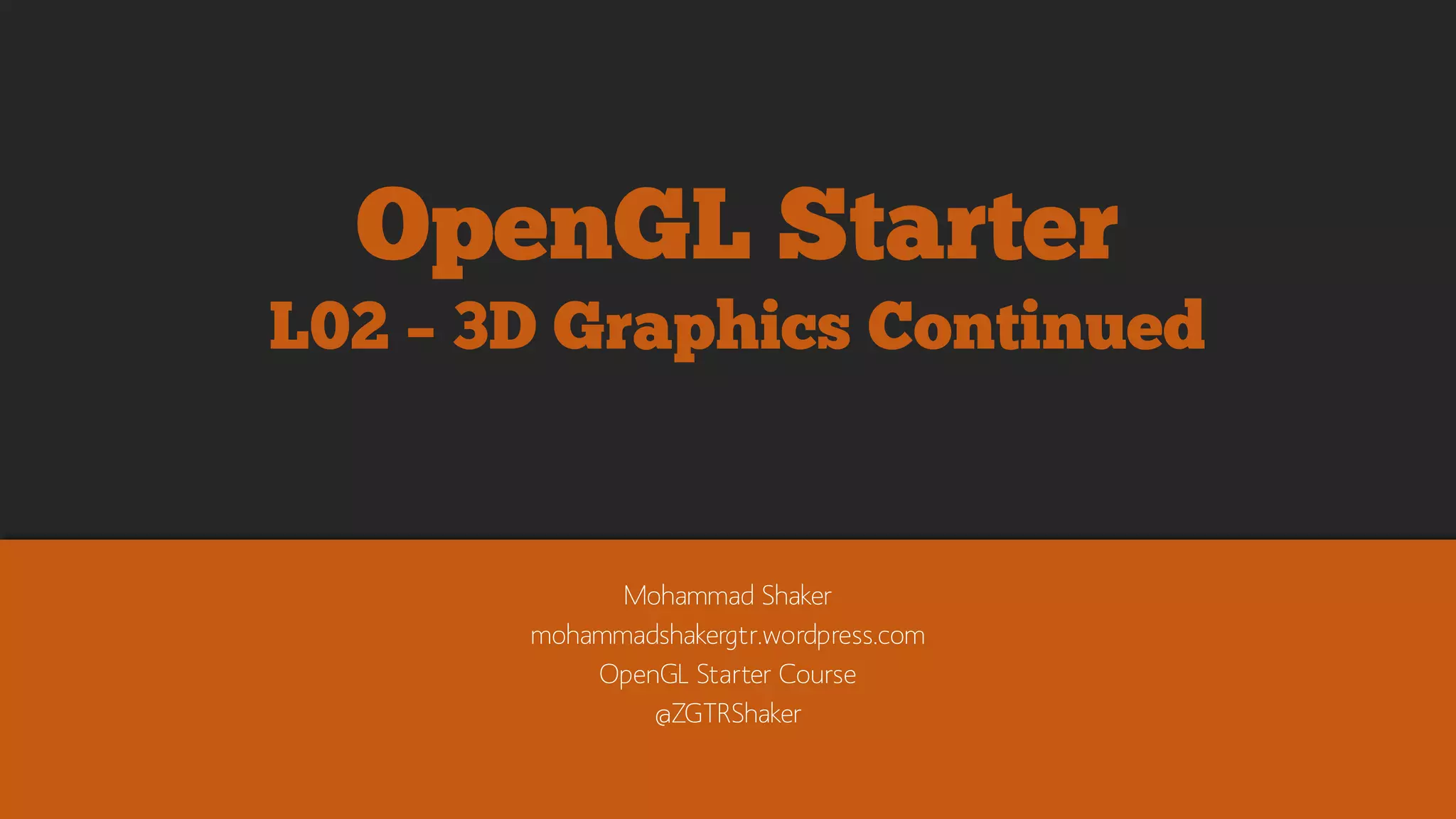 The document provides an overview of various computer graphics and OpenGL concepts including cube maps, texture mapping, lighting, blending, shadowing, fog, blurring, cameras, clipping, reflection, particles systems, loaders for 3D objects, terrain generation, and sound engines. It also includes code snippets and explanations for implementing concepts like lighting, blending, shadow mapping, and simple particle systems in OpenGL. The document serves as a short introductory course covering essential topics for OpenGL graphics programming.