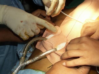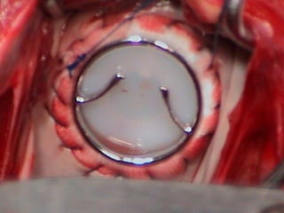 Open heart surgery requires that the heart be still, dry, and relaxed. The basic steps involve opening the chest, placing the patient on bypass to circulate their blood, cooling and stopping the heart, performing the intracardiac operation, closing the heart, and weaning the patient off bypass. Key parts of the procedure include cannulating major vessels like the aorta and vena cavas to connect the patient to the bypass machine, delivering cardioplegia to arrest the heart, performing the necessary incisions and repairs on the heart, and closing the chest. Developing techniques have allowed some operations to be done without placing the patient on bypass.