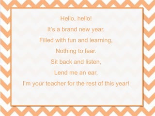 This document provides an overview of the upcoming school year from Miss Conrad, a first grade teacher. It includes introductions of Miss Conrad, her goals for students, classroom rules and procedures, daily schedules, milestones and topics covered, homework procedures, supply lists, volunteering opportunities, contact information, and a thank you for attending an open house event. The document aims to prepare parents and students for what to expect in the first grade classroom.