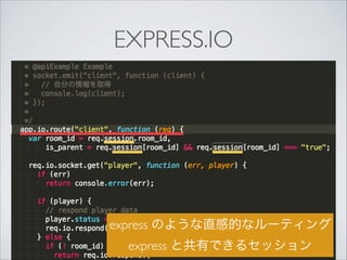EXPRESS.IO express のような直感的なルーティング express と共有できるセッション