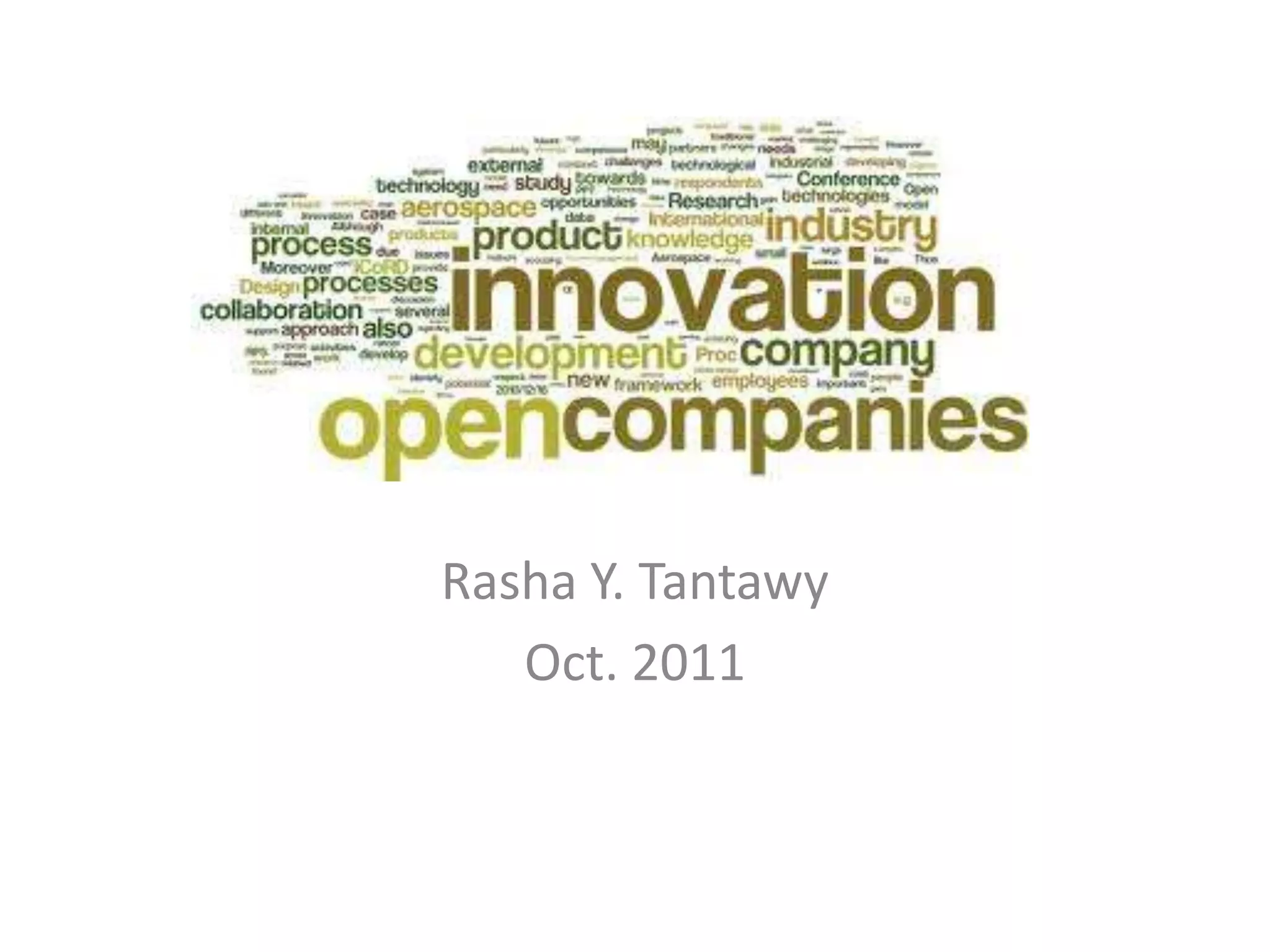 1) The document discusses open innovation and its potential benefits for small and medium enterprises (SMEs) in Egypt.