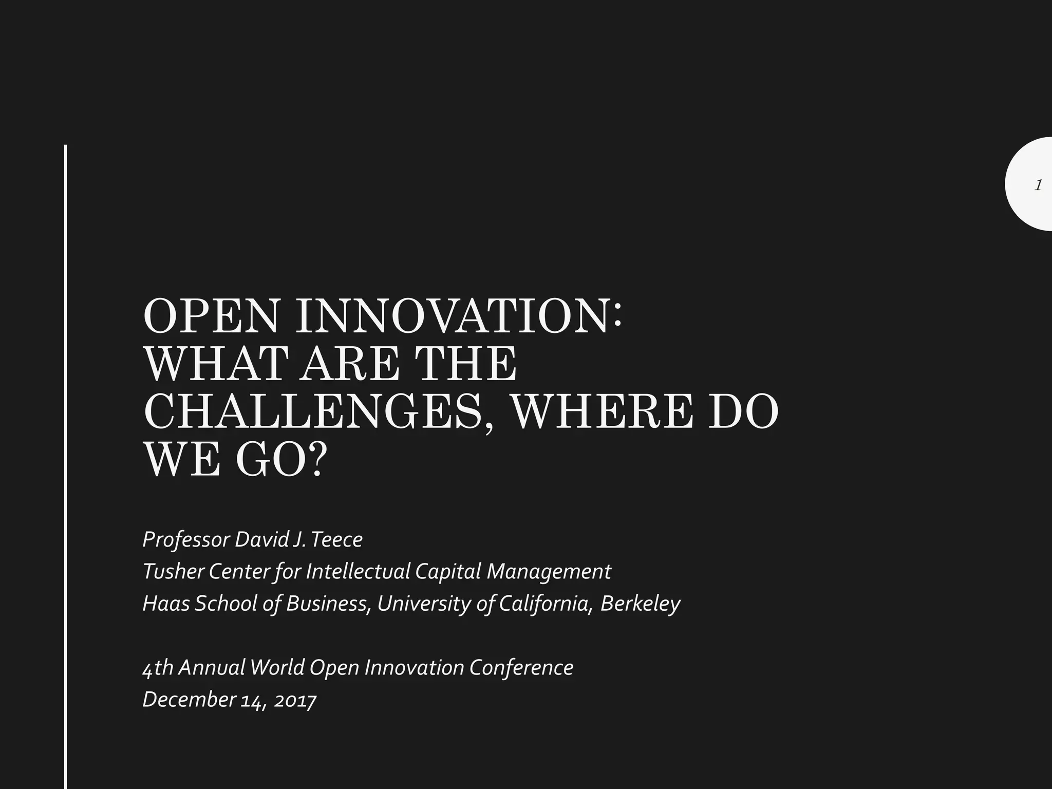 This document summarizes a presentation on open innovation challenges and directions. It discusses the history and theory of open innovation, noting it recognizes not all ideas can be developed internally. Elements of the open innovation model include the proportion of in-house vs external R&D and proprietary vs non-proprietary IP strategies. Digital convergence and platforms have implications for open innovation, requiring engagement with external ideas, technologies, and assets. Business model options are more varied in multi-invention contexts. Aligning complementary assets and partners is key, as emphasized by Adner's "wider lens" approach. Sensing external opportunities and seizing them through collaboration are ongoing challenges for open innovation.