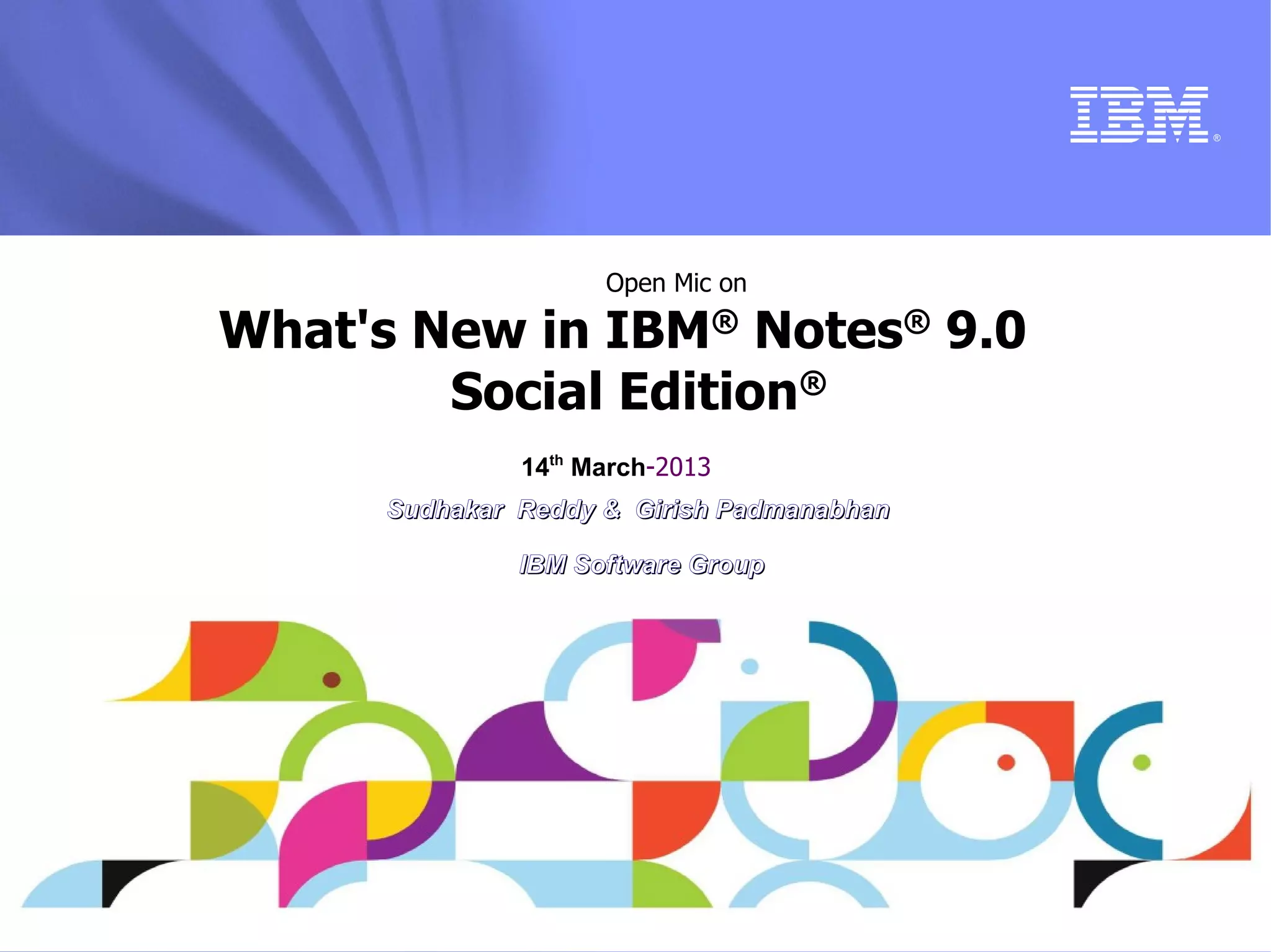 The document discusses new features in IBM Notes 9.0 Social Edition. It describes enhancements to the user interface to make it more modern and easy to use. Key features highlighted include a new "Discover" page for easier access to help resources, improved search capabilities, grouping emails by date, showing the beginning of messages, and updated integration with IBM Connections for social networking features. The presentation provides screenshots and explanations of the new capabilities in IBM Notes 9.0.