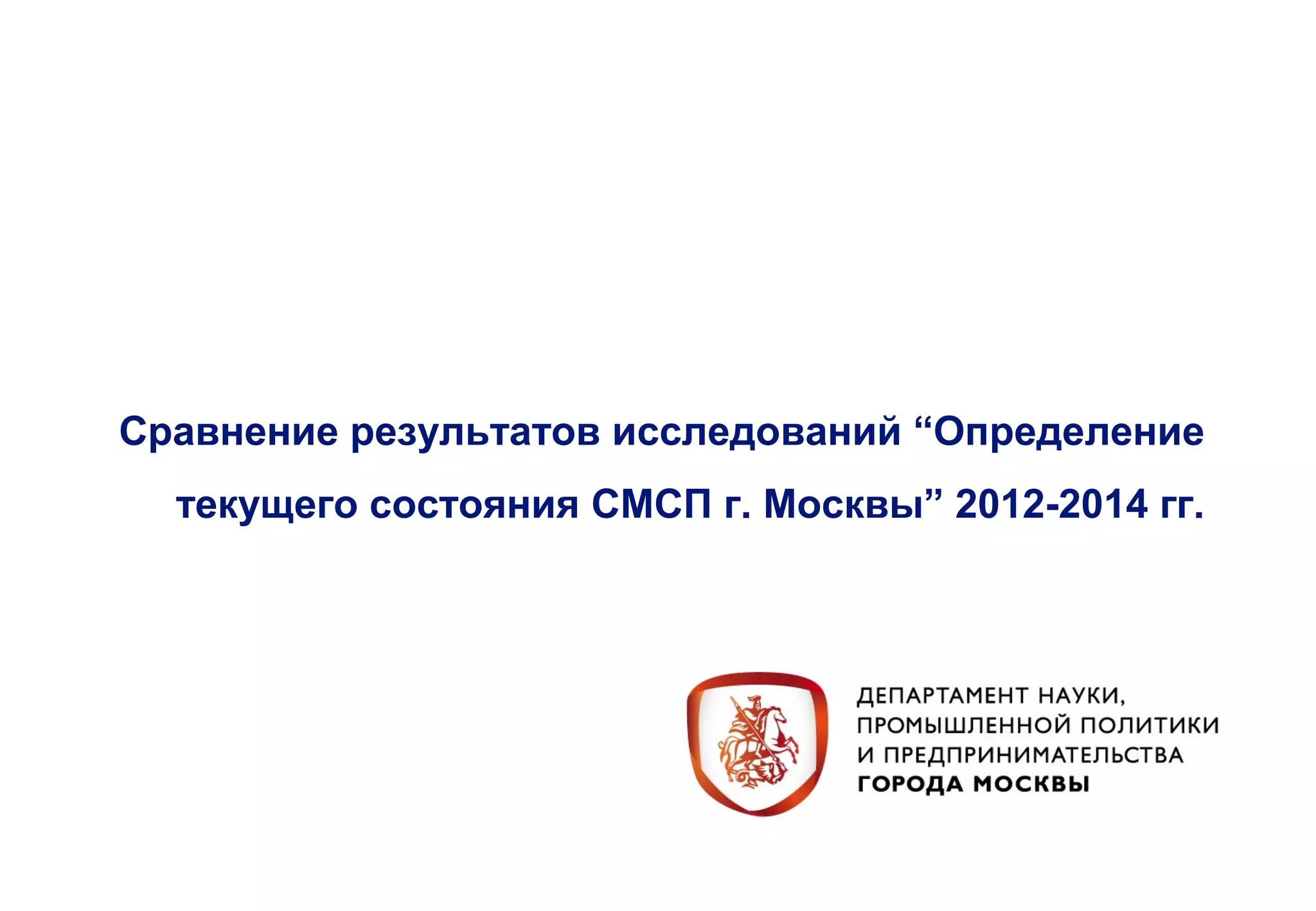 Документ представляет анализ текущего состояния малого и среднего бизнеса в Москве в период с 2012 по 2014 годы. Основные выводы показывают, что в 2014 году более половины предприятий отметили ухудшение экономической ситуации, снижение годовых оборотов и прибыльности, а также сокращение числа сотрудников. Кроме того, наблюдается рост использования небанковских источников финансирования.