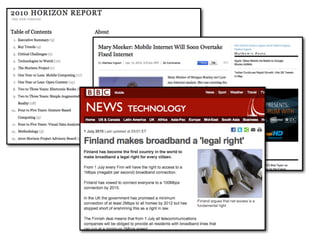 The document discusses the importance of open and networked learning in education, emphasizing collaboration, knowledge sharing, and personal learning environments. It highlights the challenges and potential transformative power of these approaches in fostering a more connected and engaging educational experience. The text also raises questions about the role of technology in learning and the necessity of adapting to the evolving media landscape.