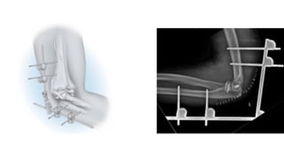1. Kirschner wires or Steinmann pins are used to transfix the olecranon and humerus or